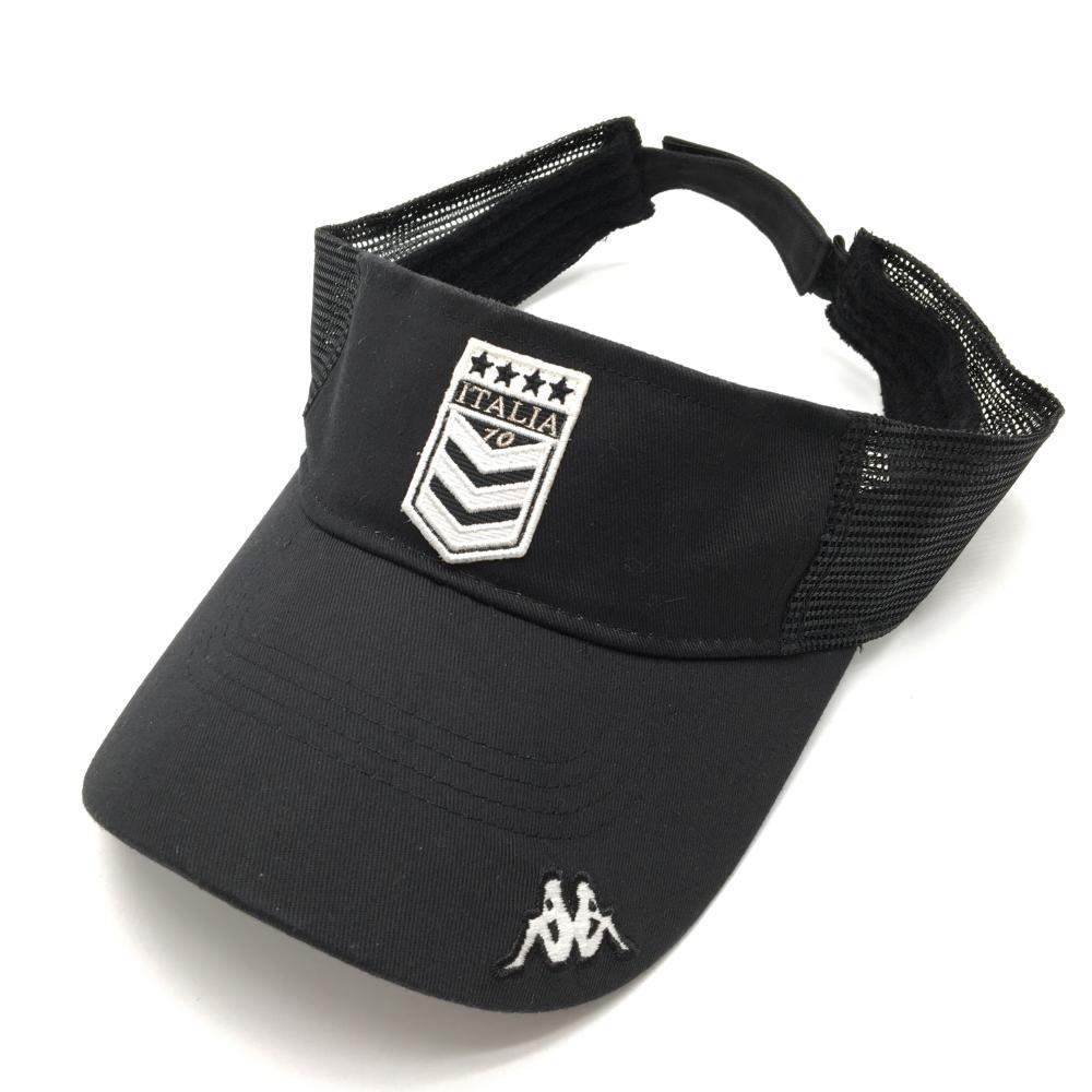 【超美品】パーリーゲイツ サンバイザー カーキ×ネイビー サイド一部メッシュ シリコンワッペン FR ゴルフウェア PEARLY GATES