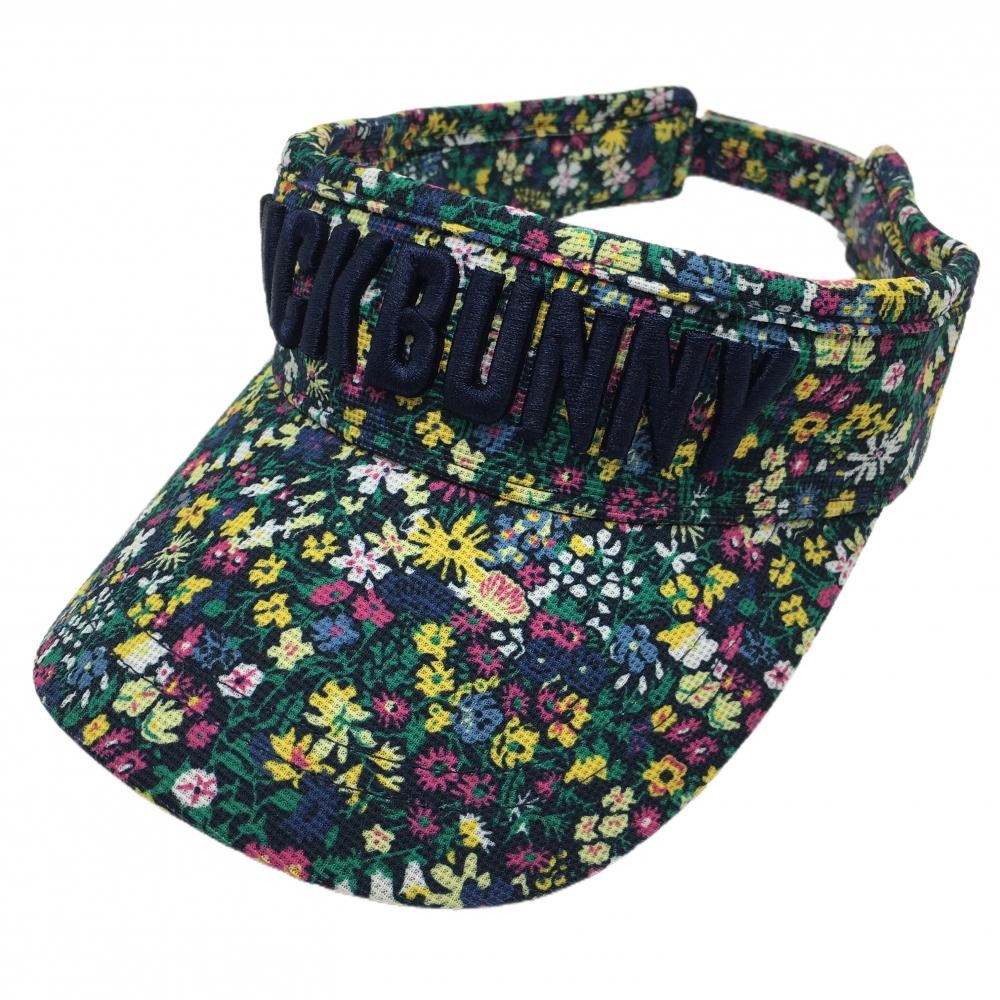 【新品】ビバハート サンバイザー 白×グリーン系×ネイビー 小花柄 つばロゴ レディース 40 ゴルフウェア VIVA HEART