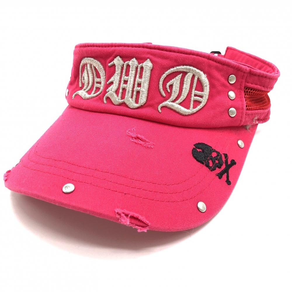 【美品】ダンスウィズドラゴン サンバイザー ピンク×シルバー ロゴ刺しゅう レディース フリーサイズ ゴルフウェア Dance With Dragon