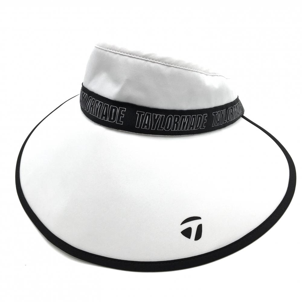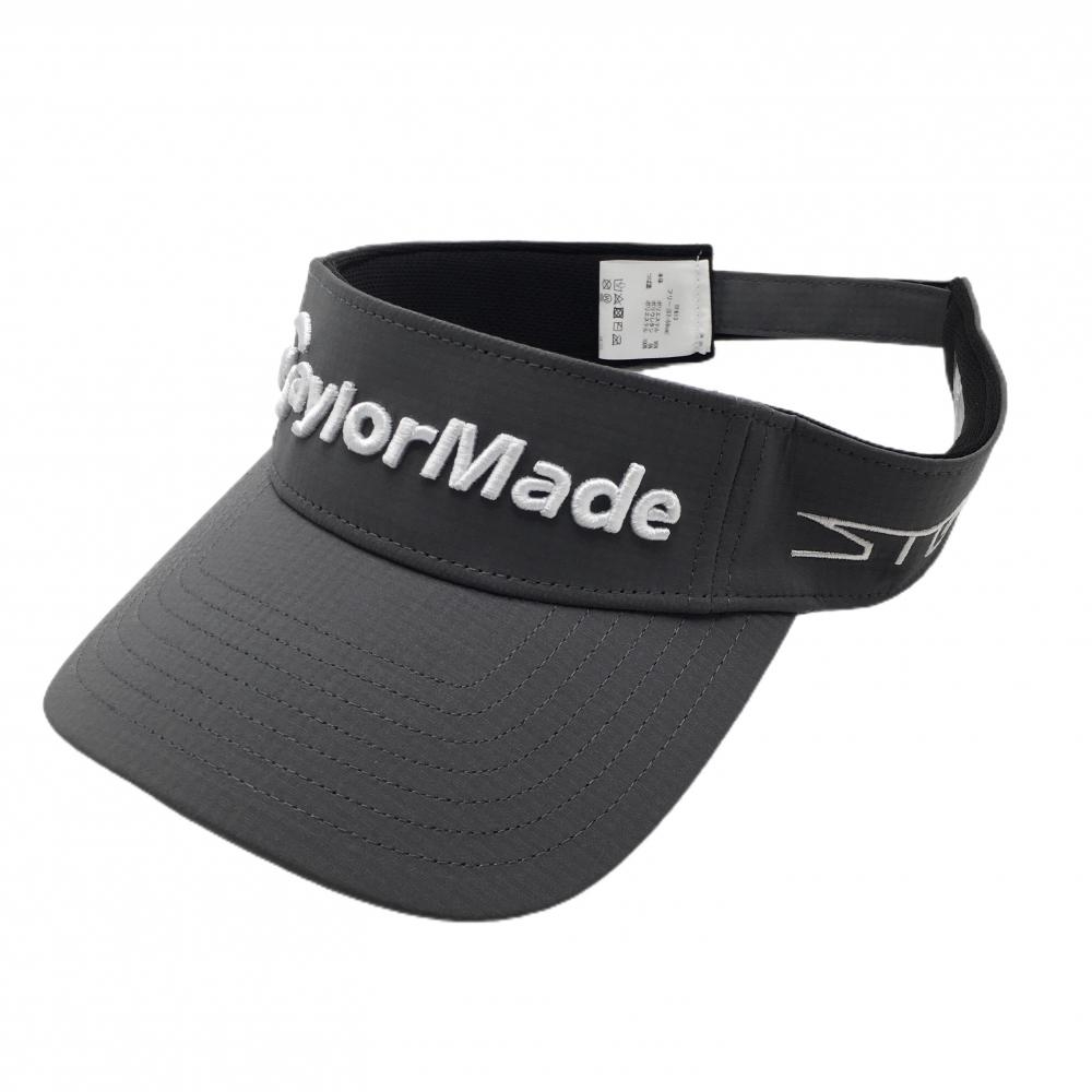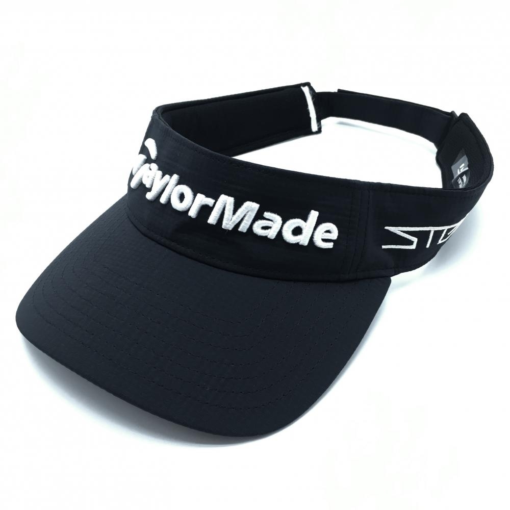 【美品】テーラーメイド サンバイザー サーモンピンク×黒 ロゴ フリー(55~57cm) ゴルフウェア TaylorMade
