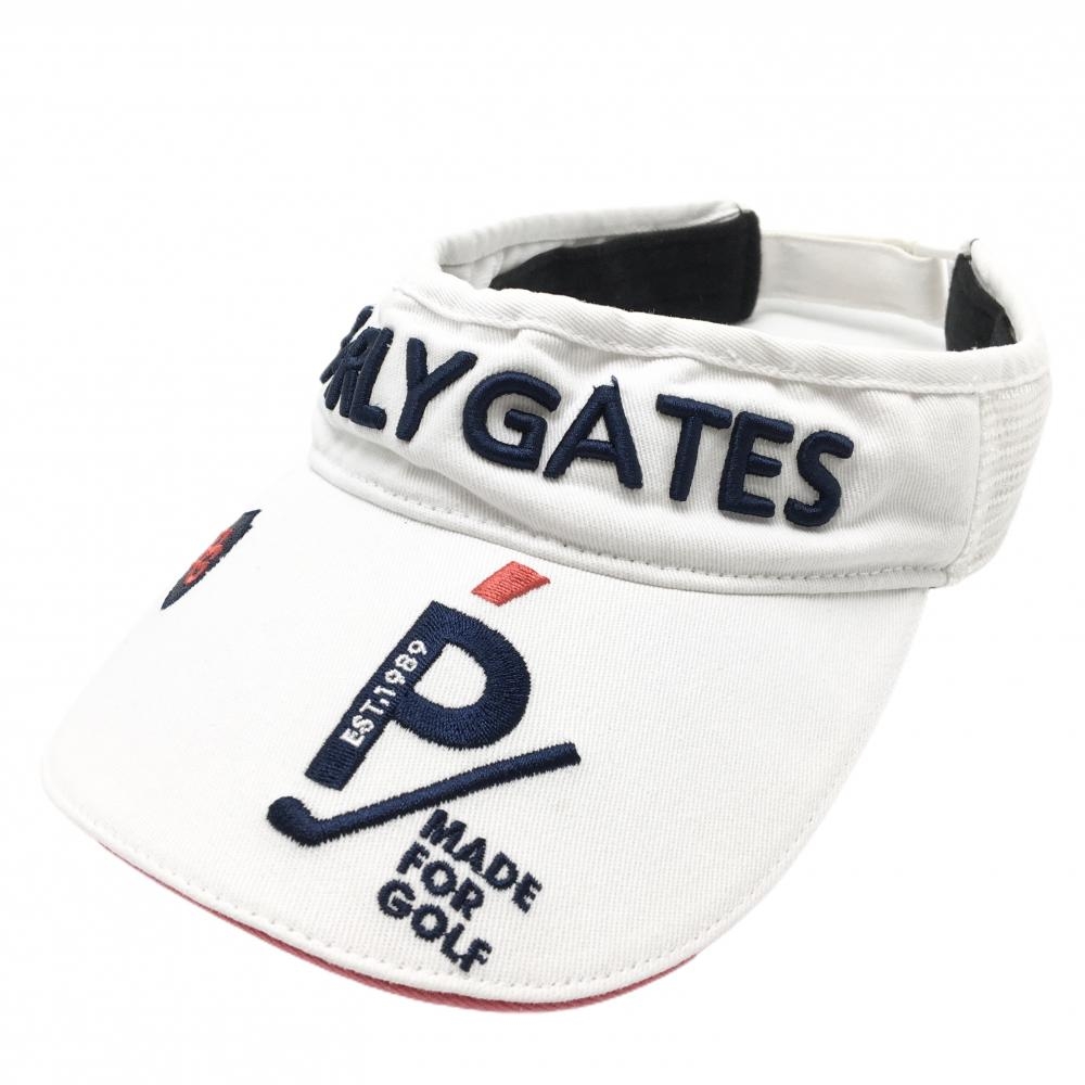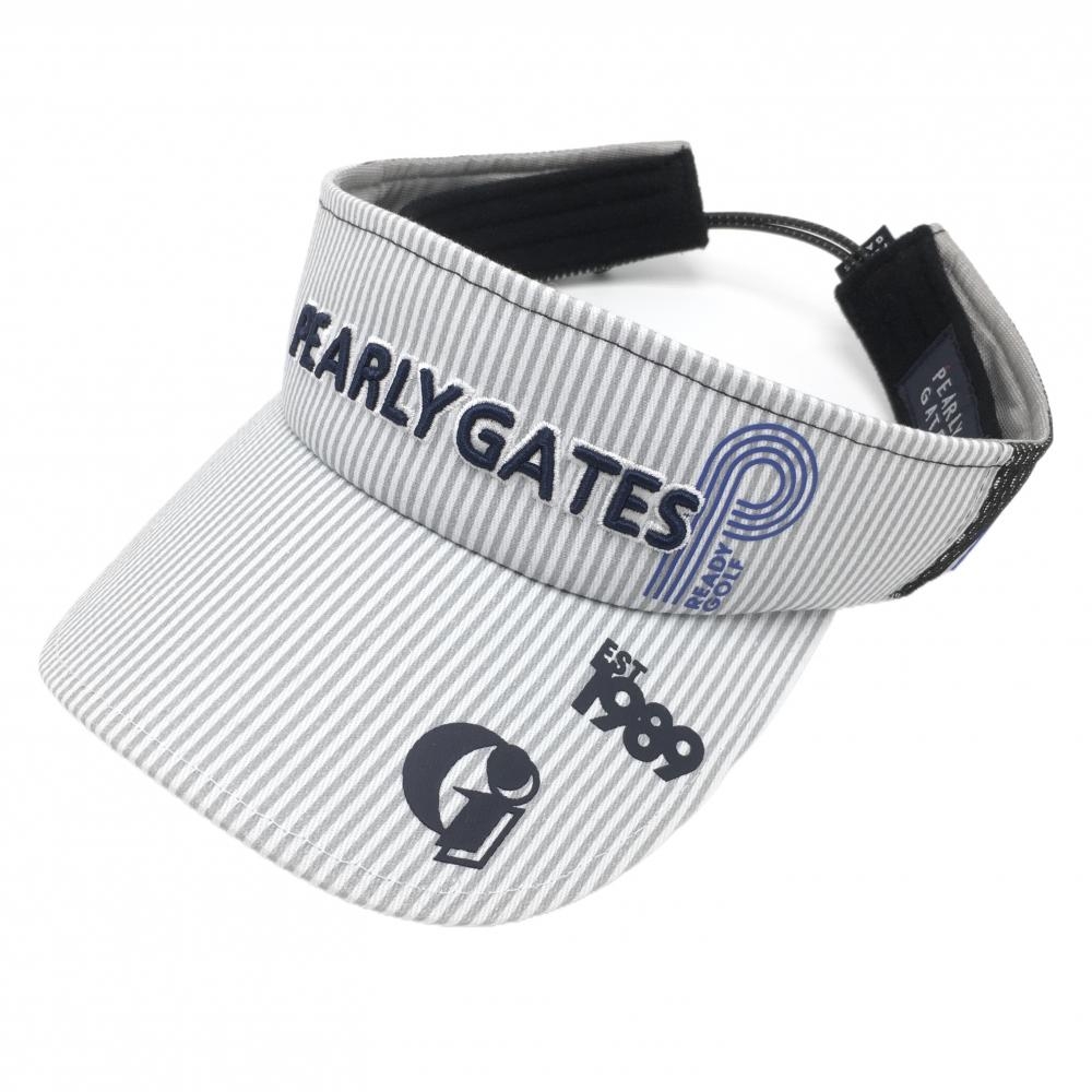パーリーゲイツ サンバイザー 白×ネイビー つば刺しゅう FR ゴルフウェア PEARLY GATES