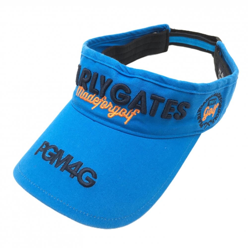 パーリーゲイツ サンバイザー ブルー×白 ロゴ刺しゅう 30周年 汗取りテープ付き ゴルフウェア PEARLY GATES