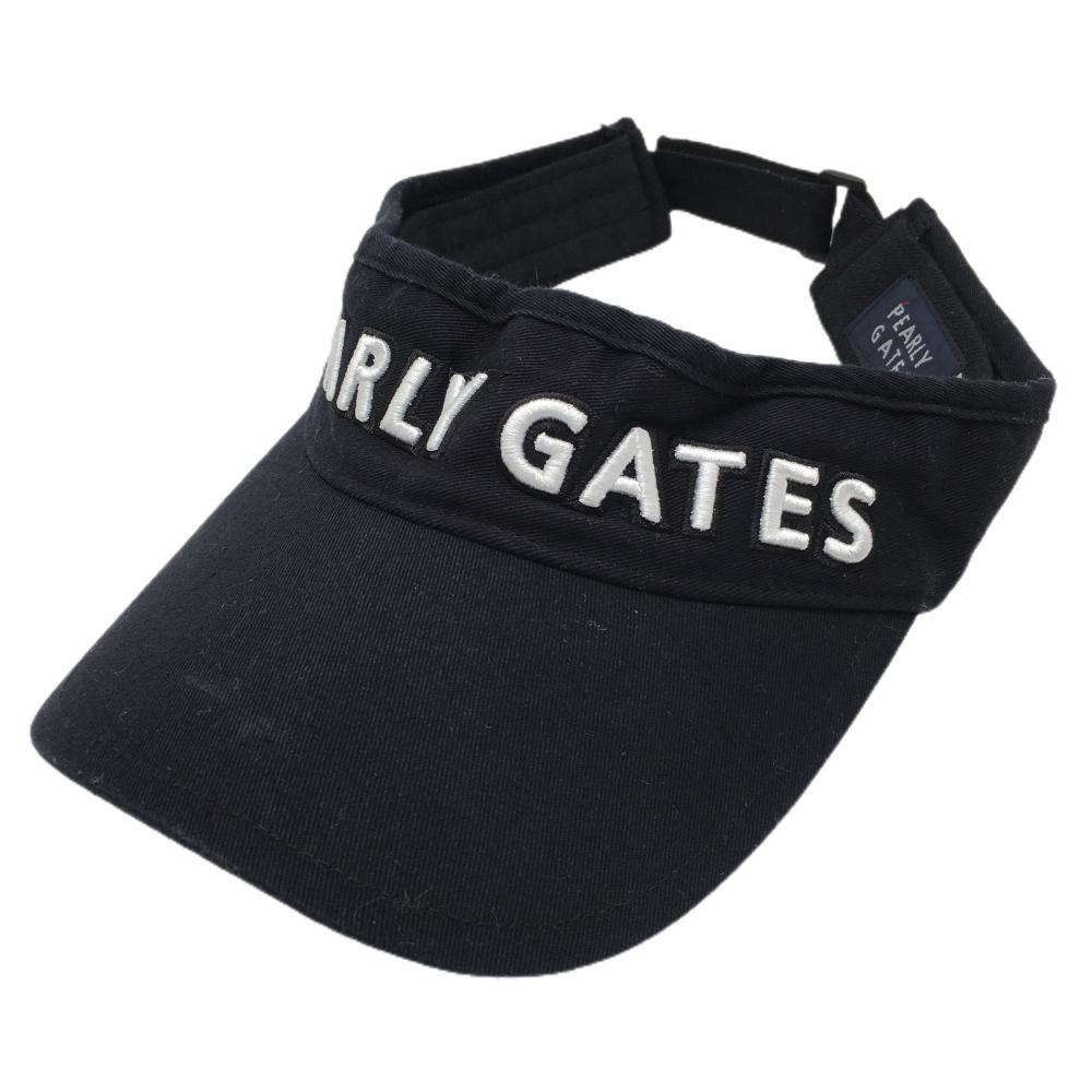 【美品】パーリーゲイツ サンバイザー 黒×パープル 微起毛 立体ロゴ刺しゅう ゴルフウェア PEARLY GATES