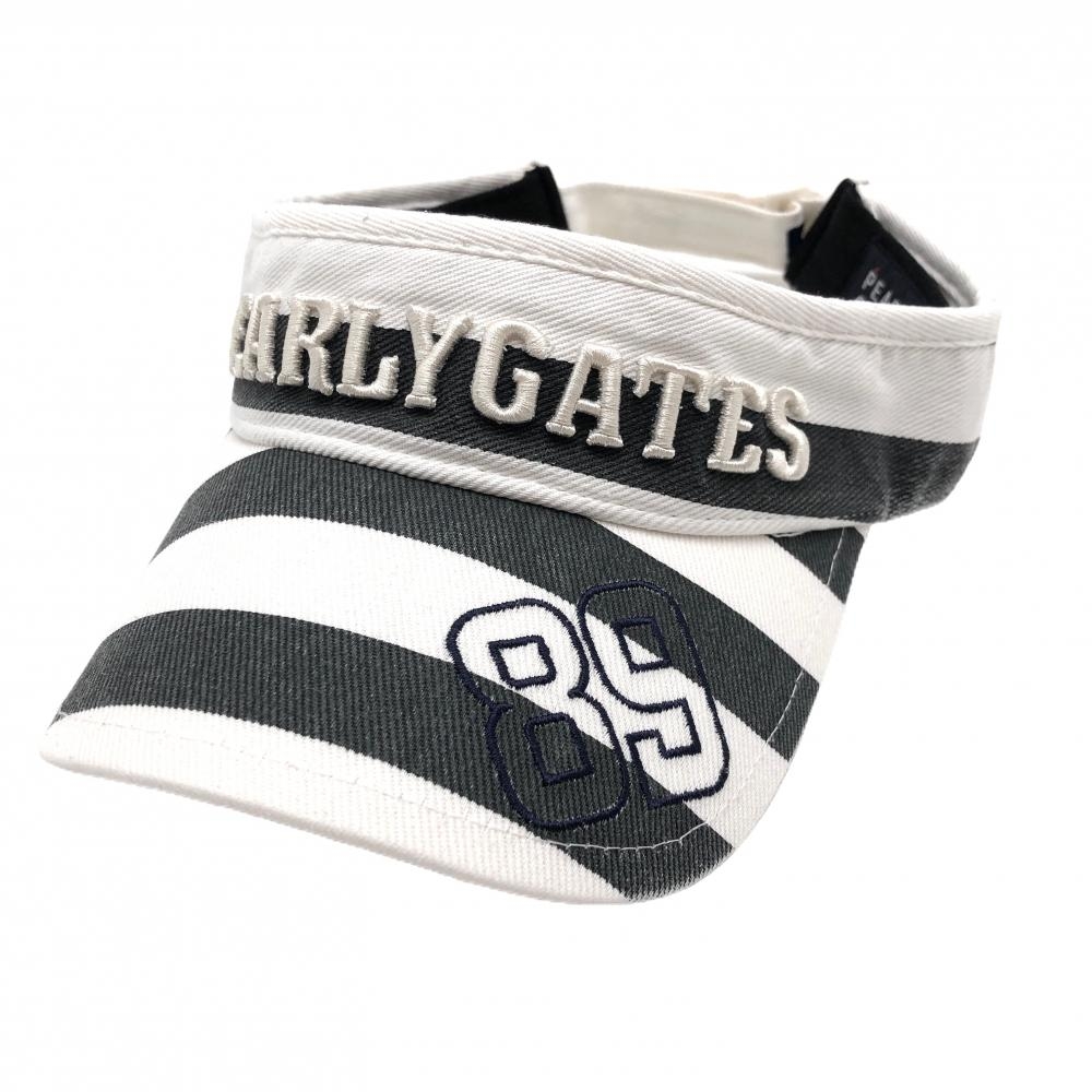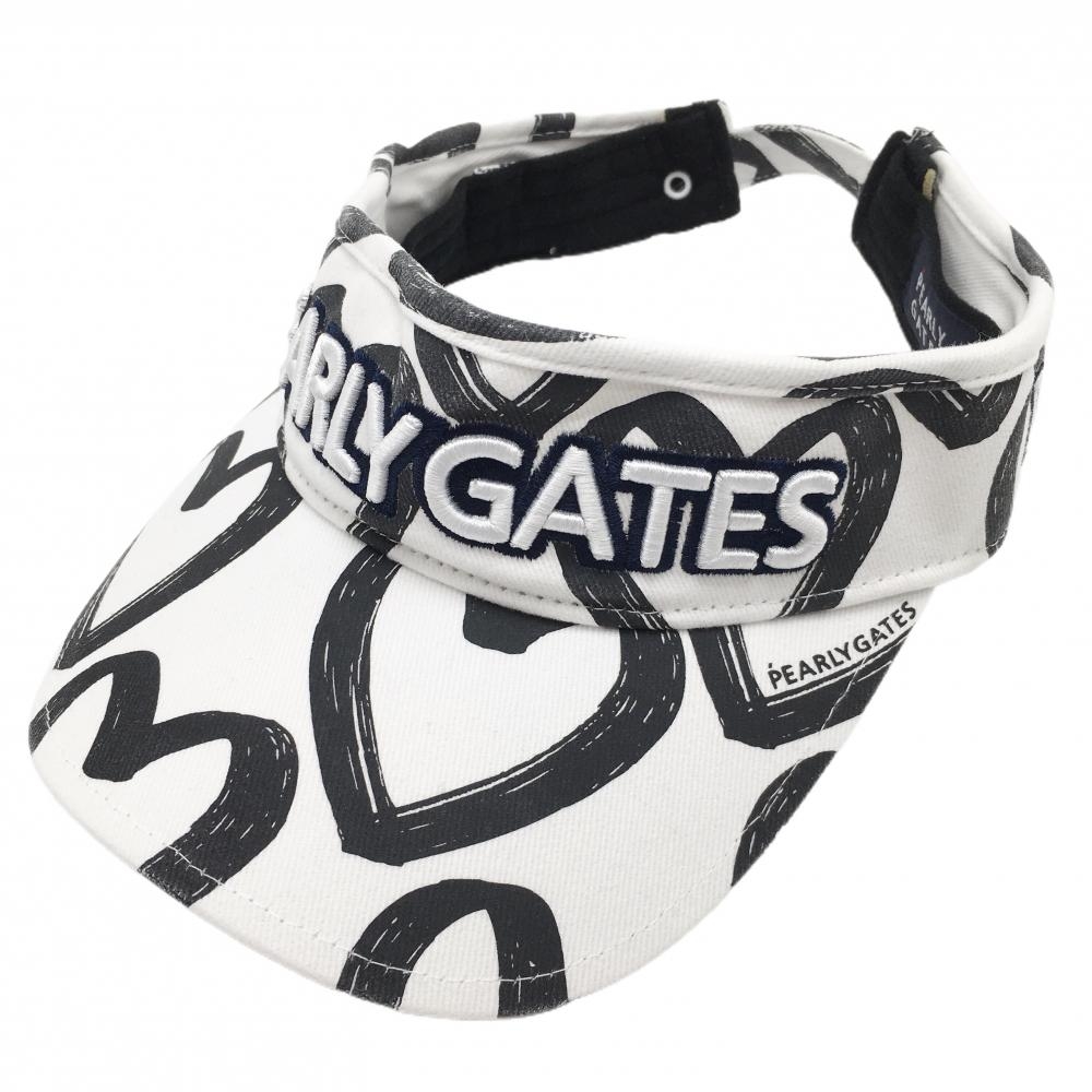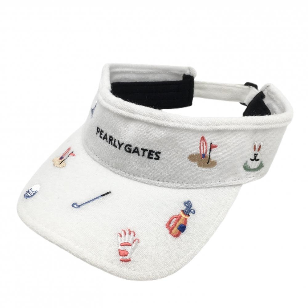 【超美品】パーリーゲイツ サンバイザー 白×グレー 総柄 ロゴ刺しゅう FR ゴルフウェア PEARLY GATES