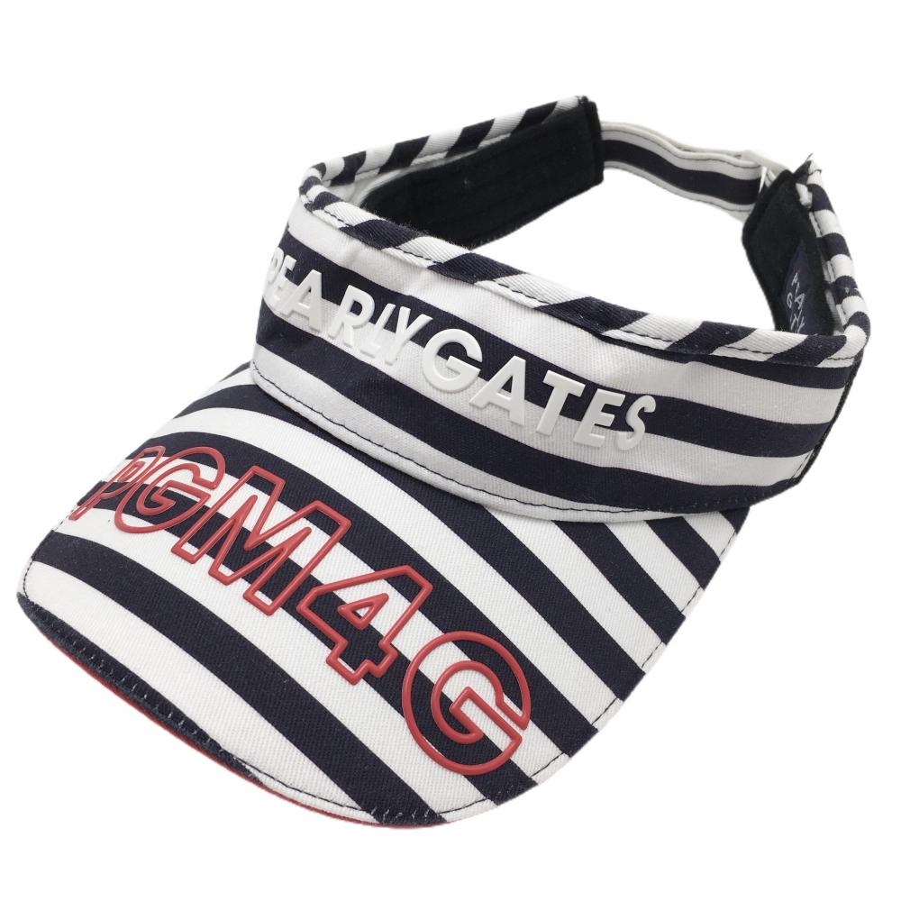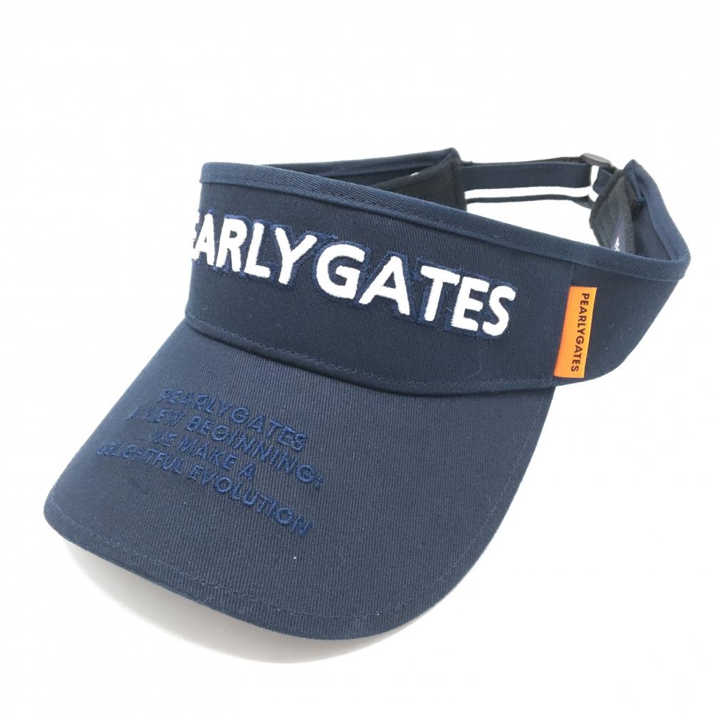 【超美品】パーリーゲイツ サンバイザー ネイビー×白 立体ロゴ FR ゴルフウェア PEARLY GATES