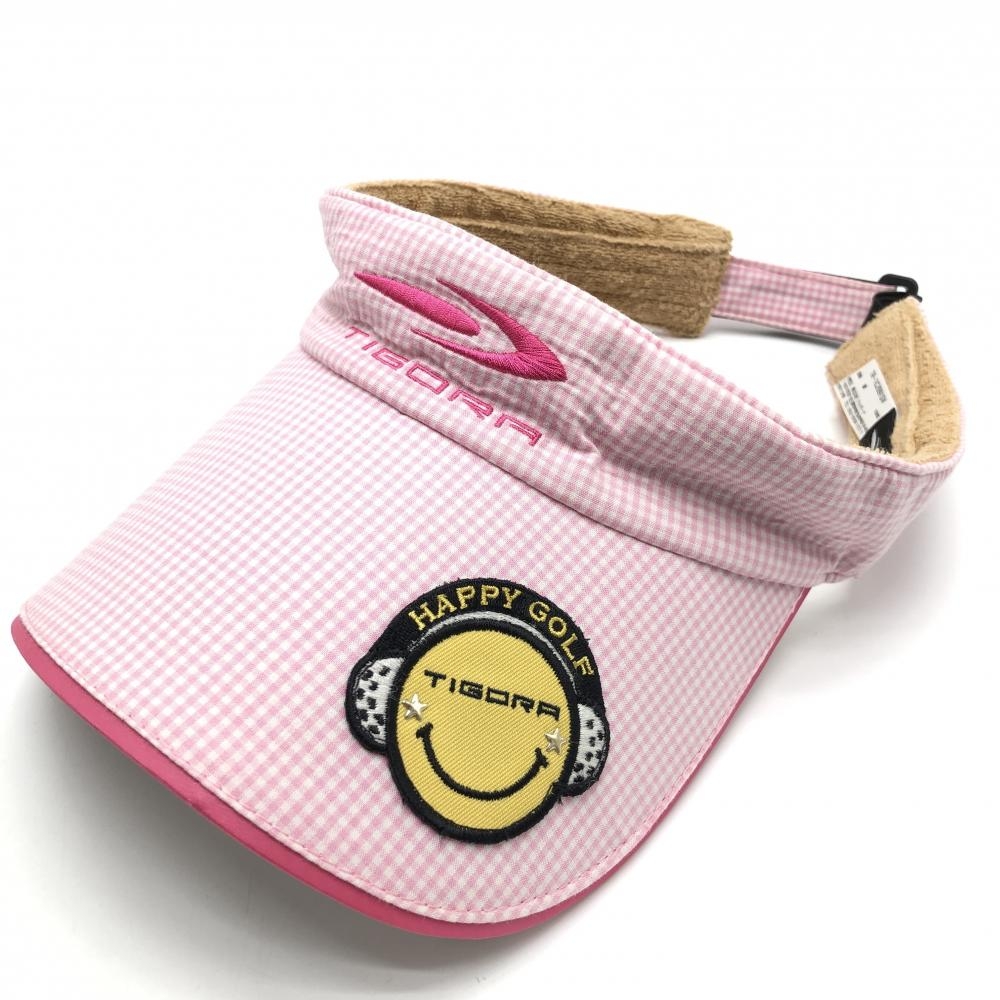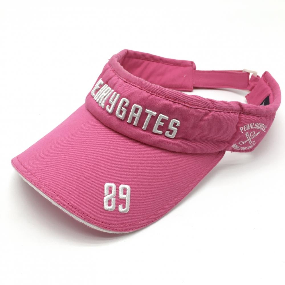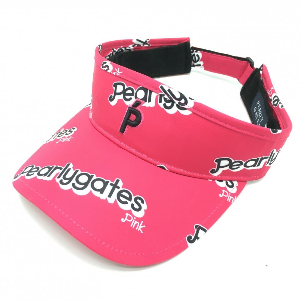【超美品】パーリーゲイツ サンバイザー ピンク×白 立体ロゴ刺しゅう FR ゴルフウェア PEARLY GATES