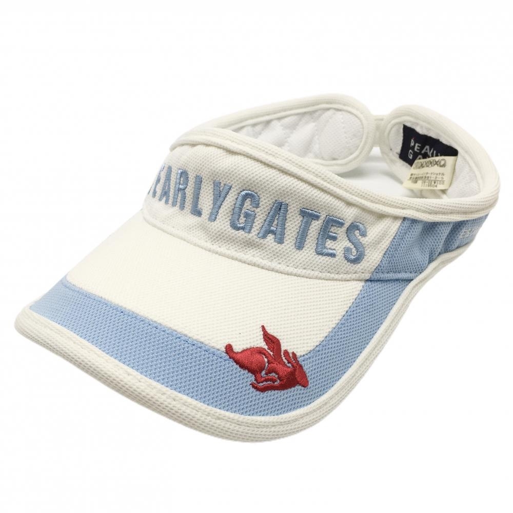 パーリーゲイツ サンバイザー 白×ブルー つば英字 汗取りパッド FR ゴルフウェア PEARLY GATES