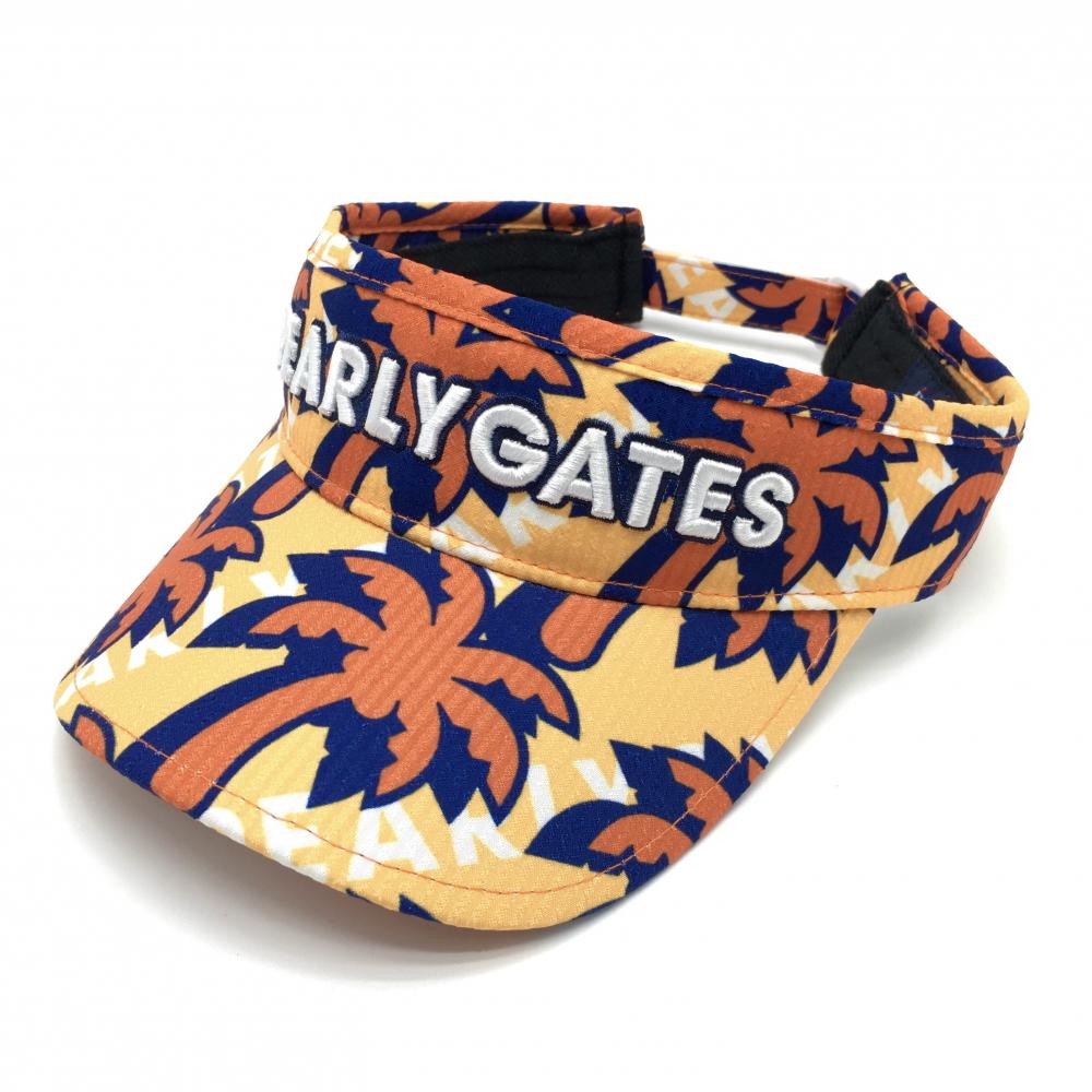 【美品】パーリーゲイツ サンバイザー オレンジ×黒 ロゴ立体ロゴ刺しゅう 汗取りパッド FR ゴルフウェア PEARLY GATES