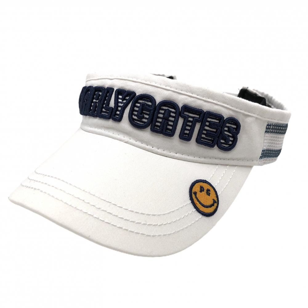 【美品】パーリーゲイツ つば広サンバイザー 白×ネイビー つばロゴ ニコちゃん スマイル レディース FR ゴルフウェア PEARLY GATES