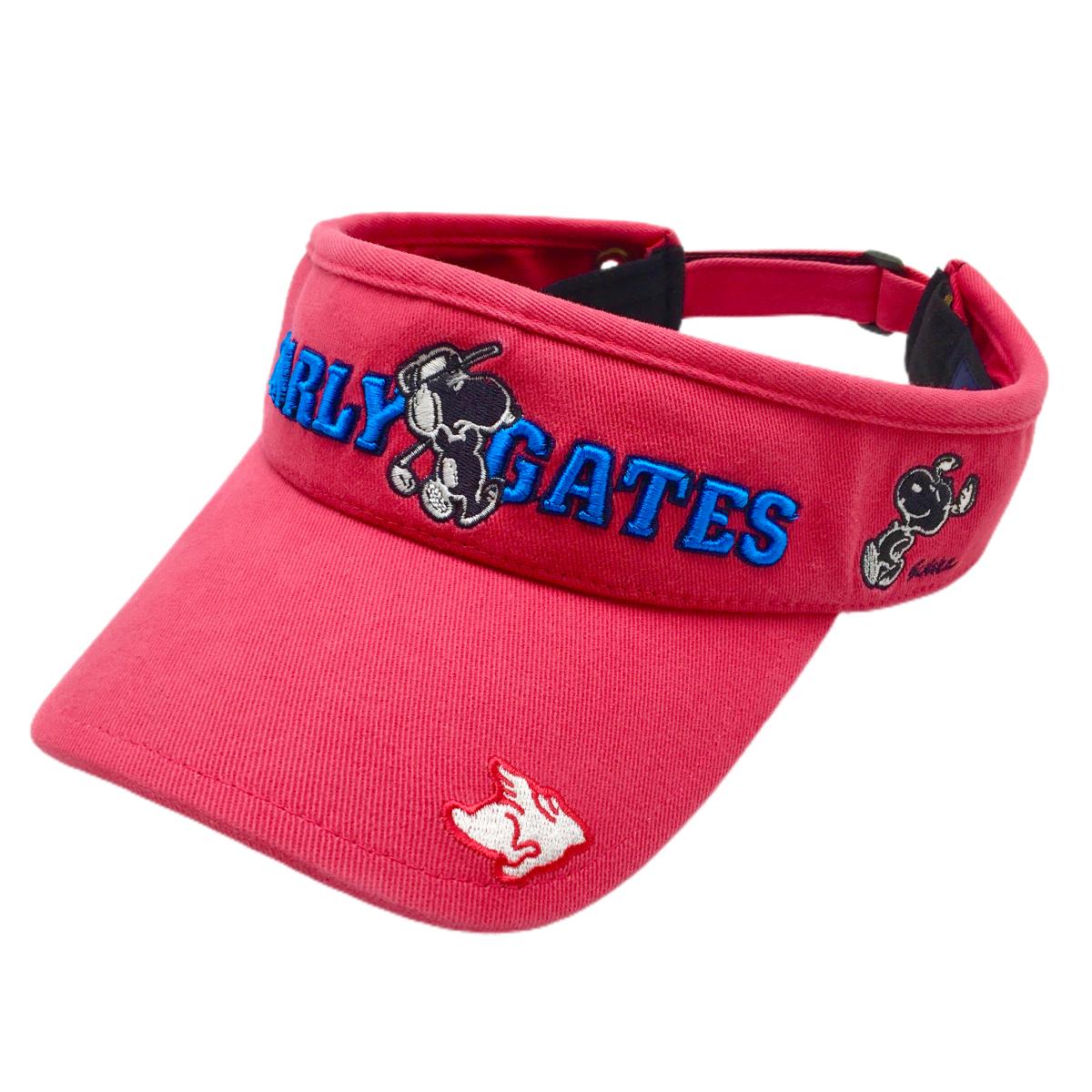パーリーゲイツ×PEANUTS サンバイザー ネイビー×レッド スヌーピー 立体ロゴ刺しゅう FR ゴルフウェア PEARLY GATES