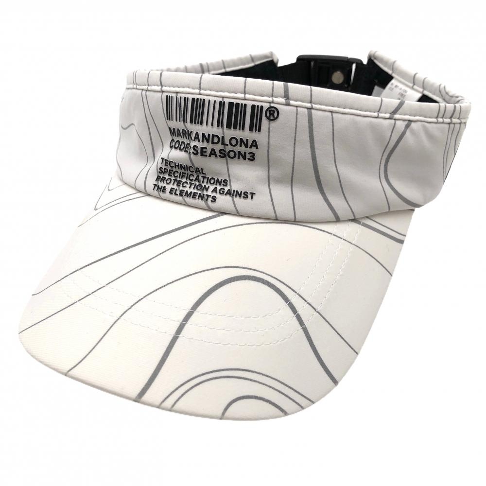 【美品】マークアンドロナ サンバイザー ライトグレー×黒 スカル総柄 サイドリボン レディース FREE ゴルフウェア MARK&LONA