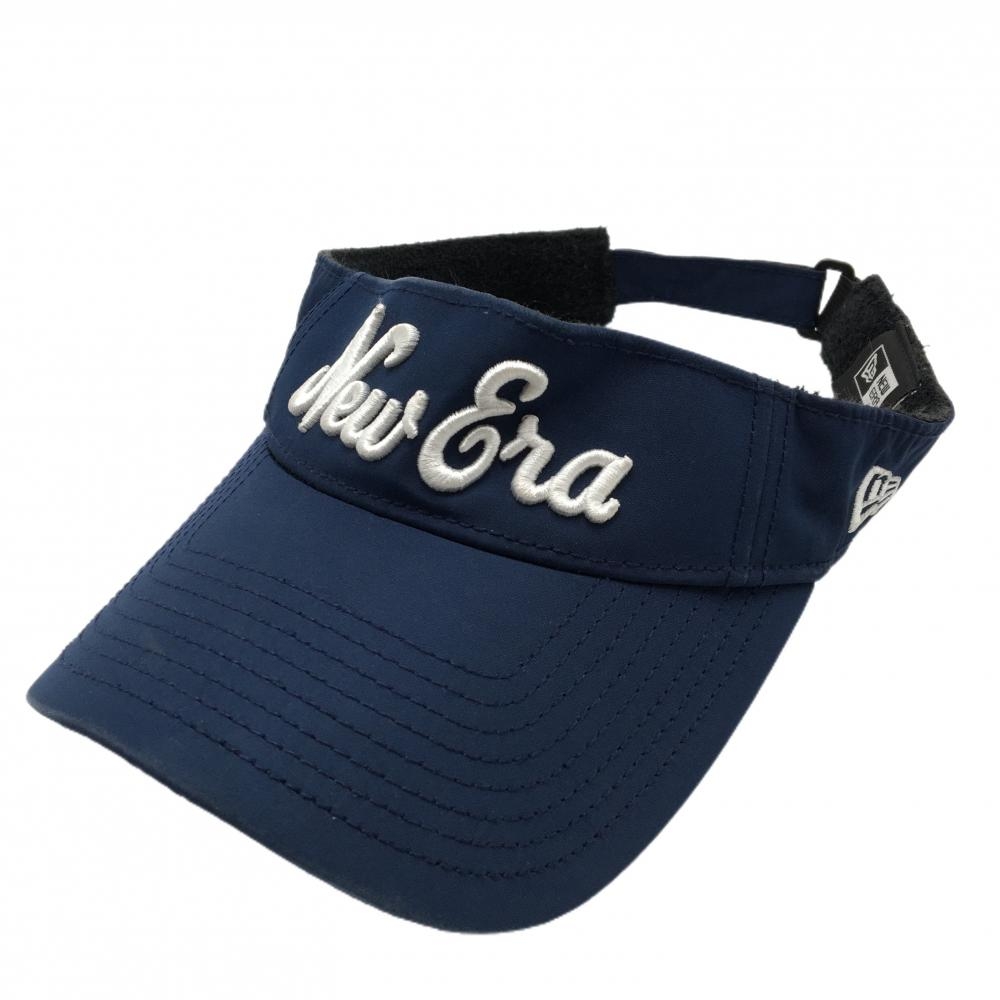 【超美品】ニューバランスゴルフ サンバイザー ネイビー×白 イヌ刺しゅう ゴルフウェア New Balance