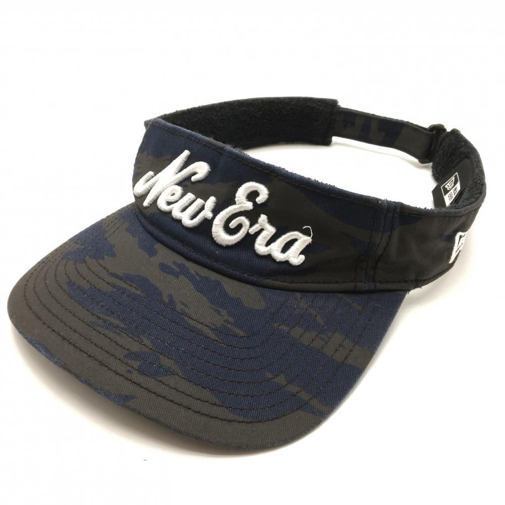ニューエラ サンバイザー 黒×白 立体ロゴ刺しゅう 内側パイル地 ゴルフウェア New Era