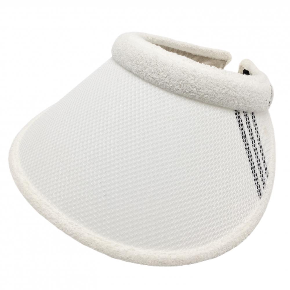 【美品】アディダス サンバイザー 白 ケーブル編み 立体ロゴ フリー(56-58cm) ゴルフウェア adidas