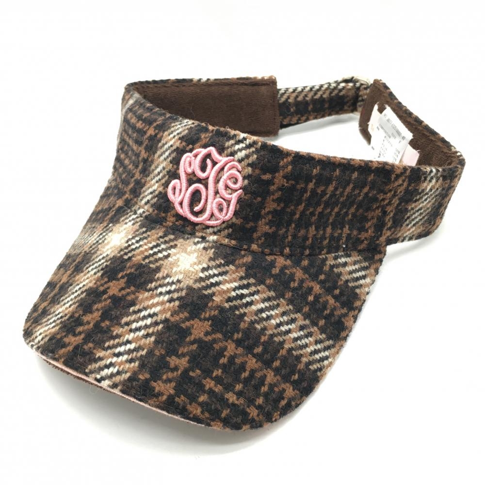【美品】パーリーゲイツ サンバイザー ブラウン×黒 チェック 立体ロゴ 汗取りパッド付 FR ゴルフウェア PEARLY GATES