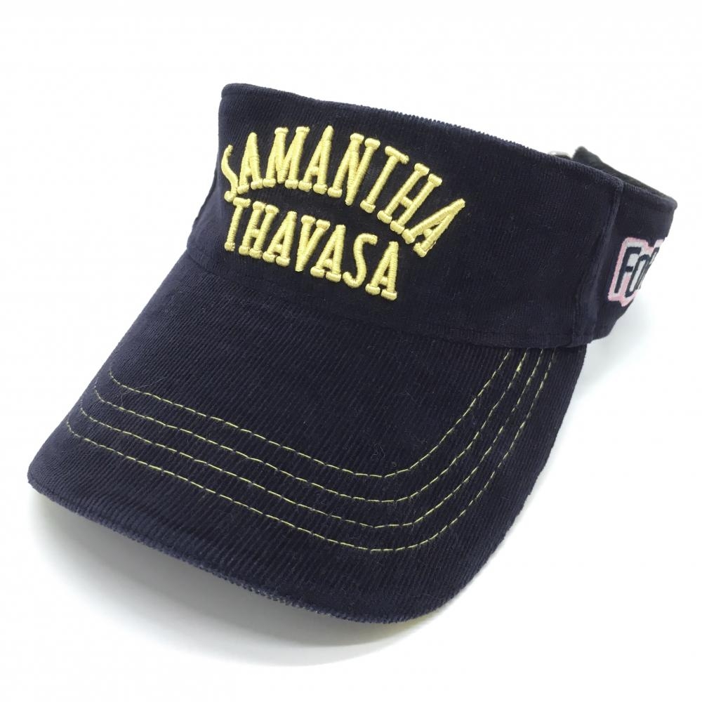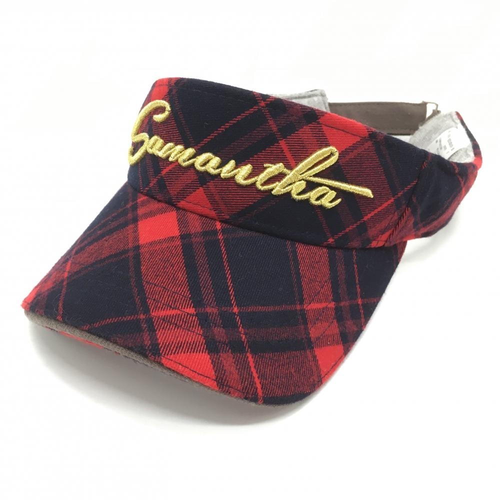 【美品】サマンサタバサNo.7 サンバイザー ネイビー×白×レッド チェック ロゴ刺しゅう レディース F ゴルフウェア Samantha Thavasa