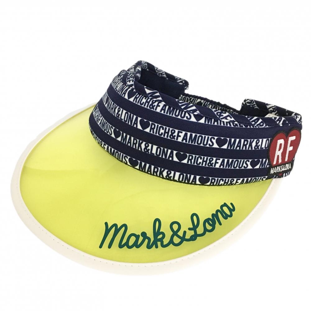 マークアンドロナ つば広サンバイザー 白×イエロー 一部ギンガムチェック リボン付 レディース FREE ゴルフウェア MARK&LONA