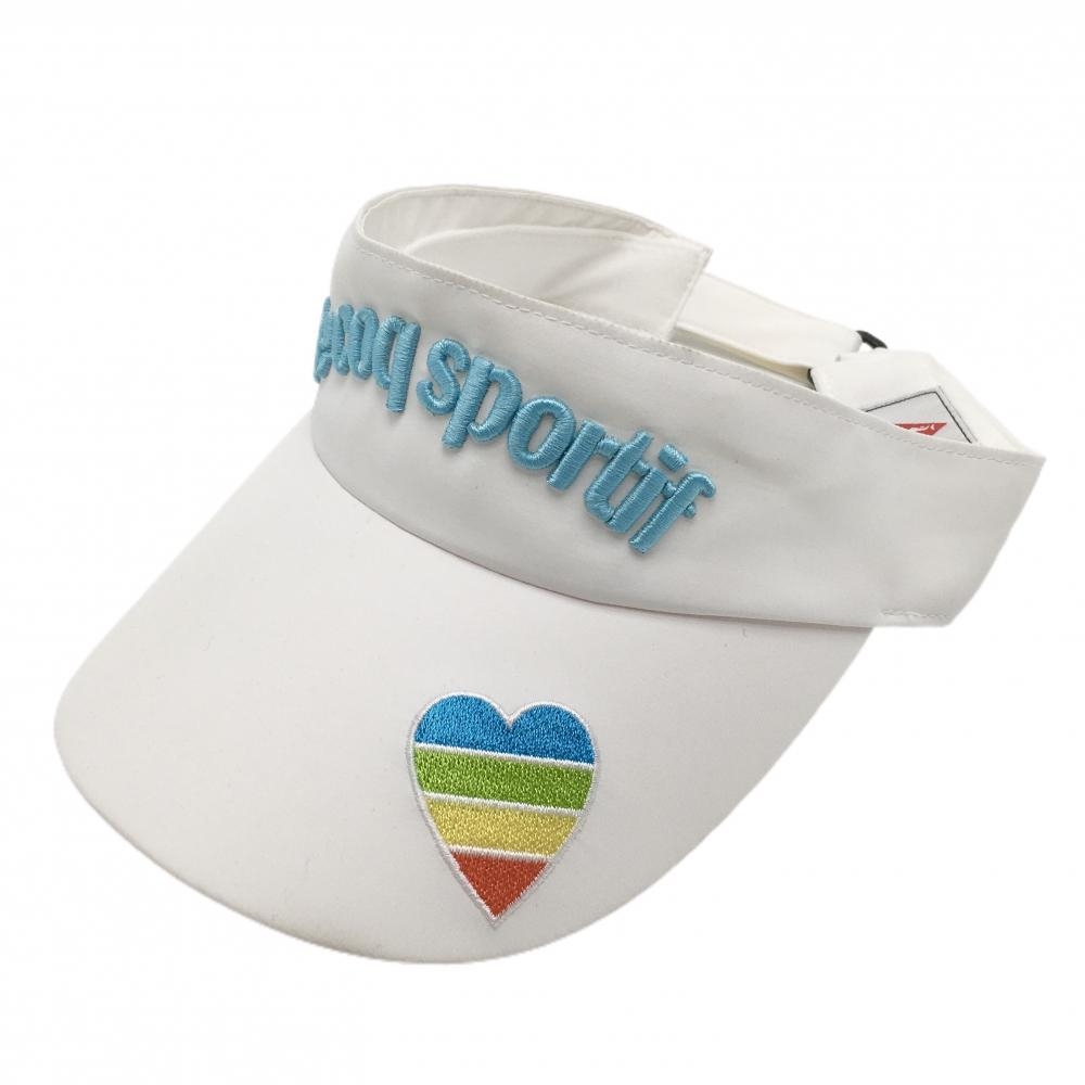 【新品】ルコックゴルフ サンバイザー 白×ネイビー つば刺しゅう F(55-57cm) ゴルフウェア le coq sportif