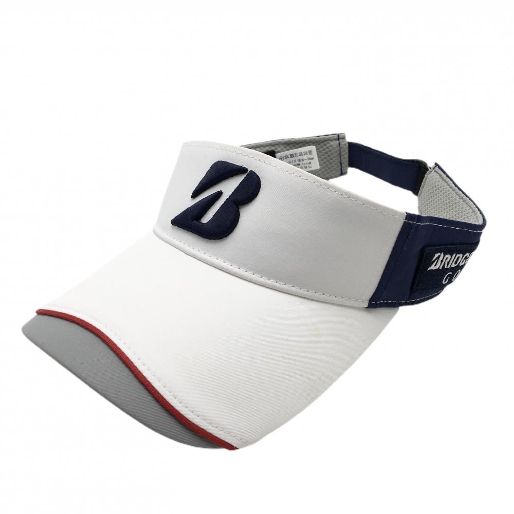 【美品】ブリヂストンTOURB サンバイザー 黒×白 立体ロゴ刺しゅう フリーサイズ(約56-59cm) ゴルフウェア Bridgestone
