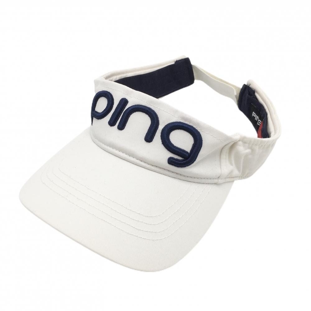 【美品】ピン サンバイザー 白 立体ロゴ リボン取外し可 レディース ONE SIZE FITS ALL ゴルフウェア PING