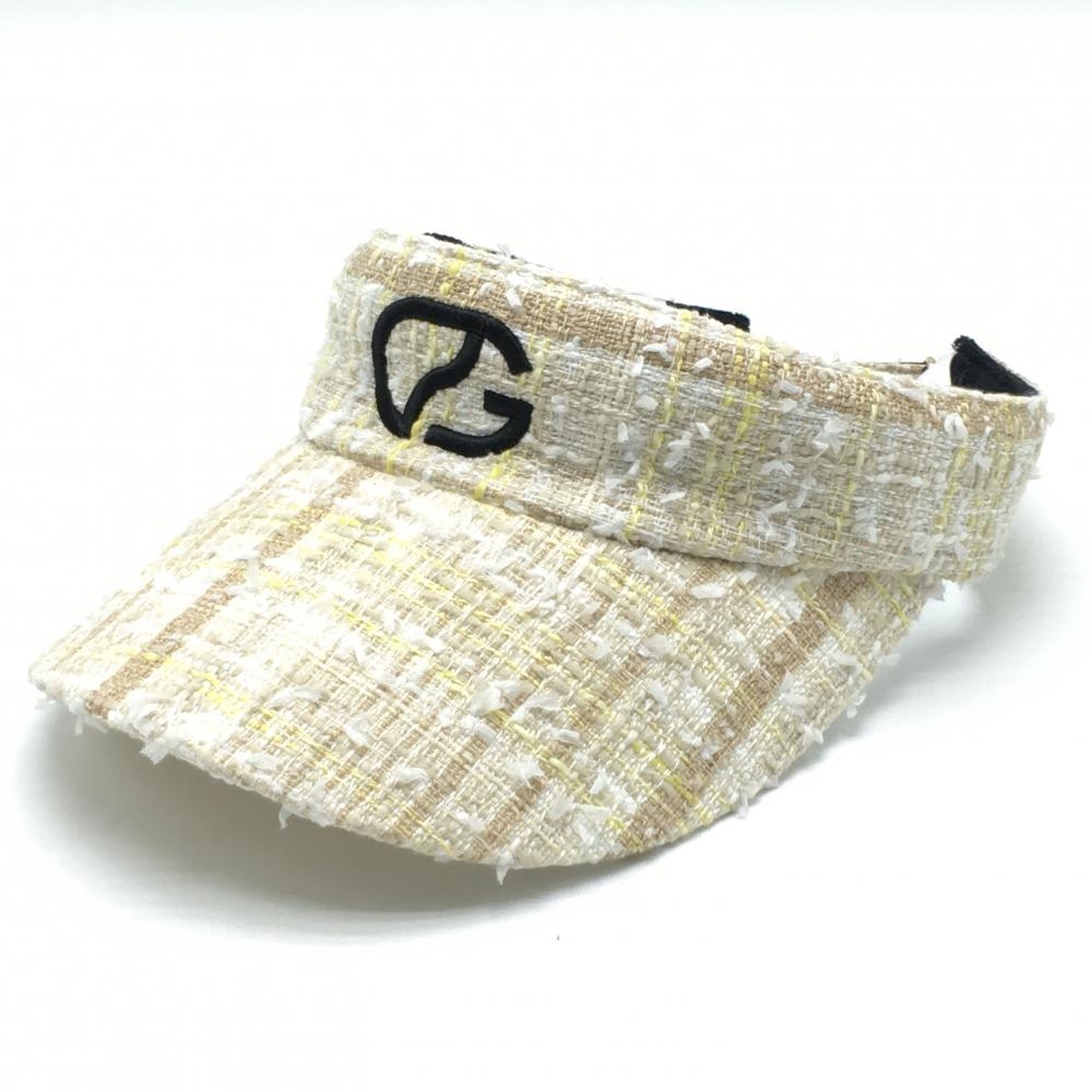 【美品】ダンスウィズドラゴン つば広サンバイザー ベージュ×ゴールド レディース フリーサイズ ゴルフウェア Dance With Dragon