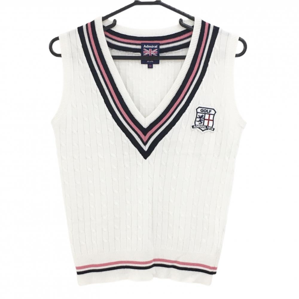 【美品】アドミラル ニットベスト 白 Vネック ロゴ刺しゅう メンズ L ゴルフウェア Admiral
