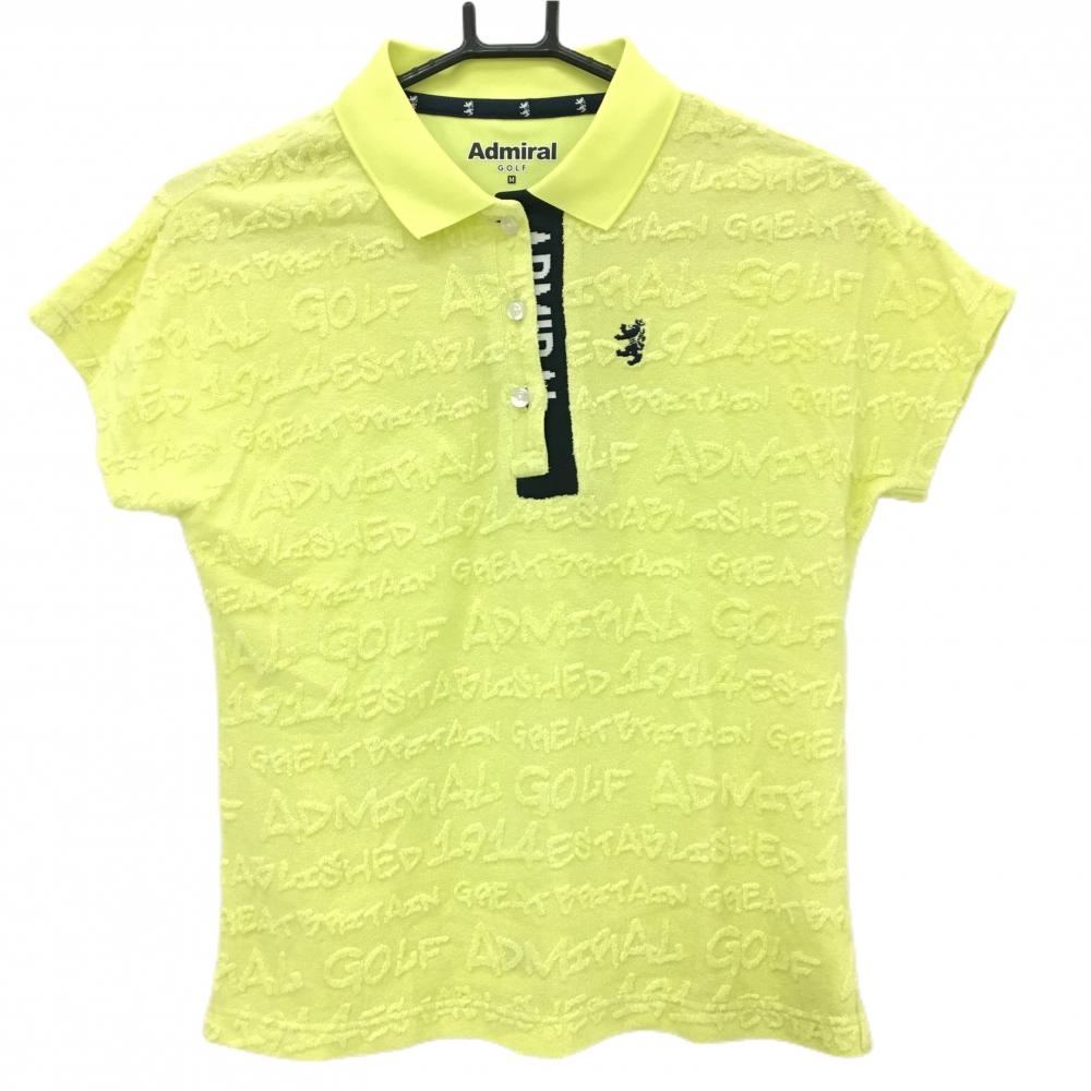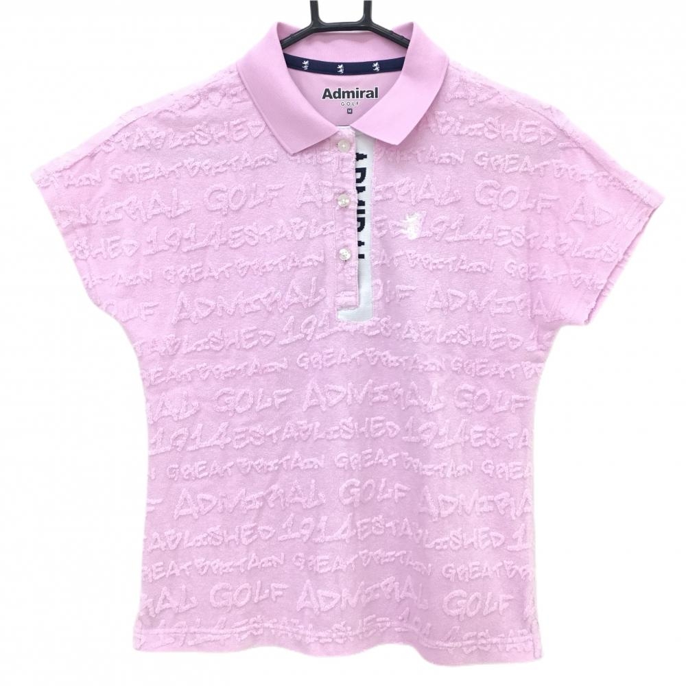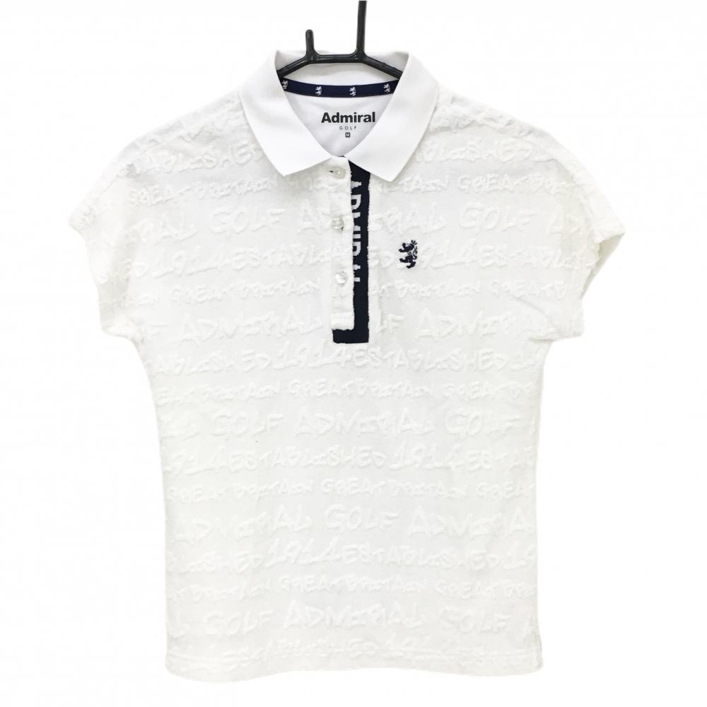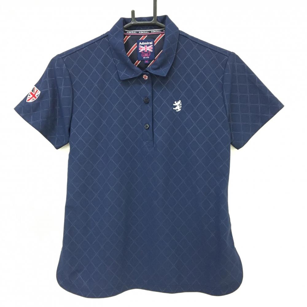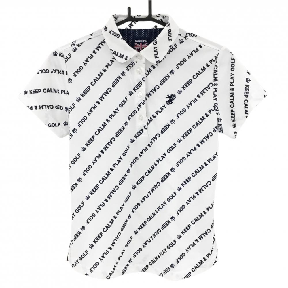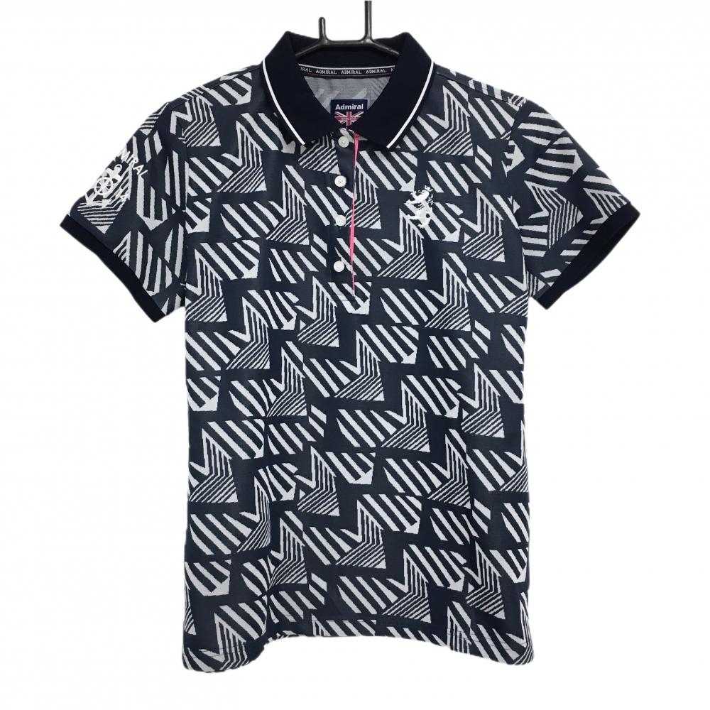 【美品】アドミラル 半袖ポロシャツ ネイビー×白 英字総柄 胸ロゴ レディース M ゴルフウェア Admiral