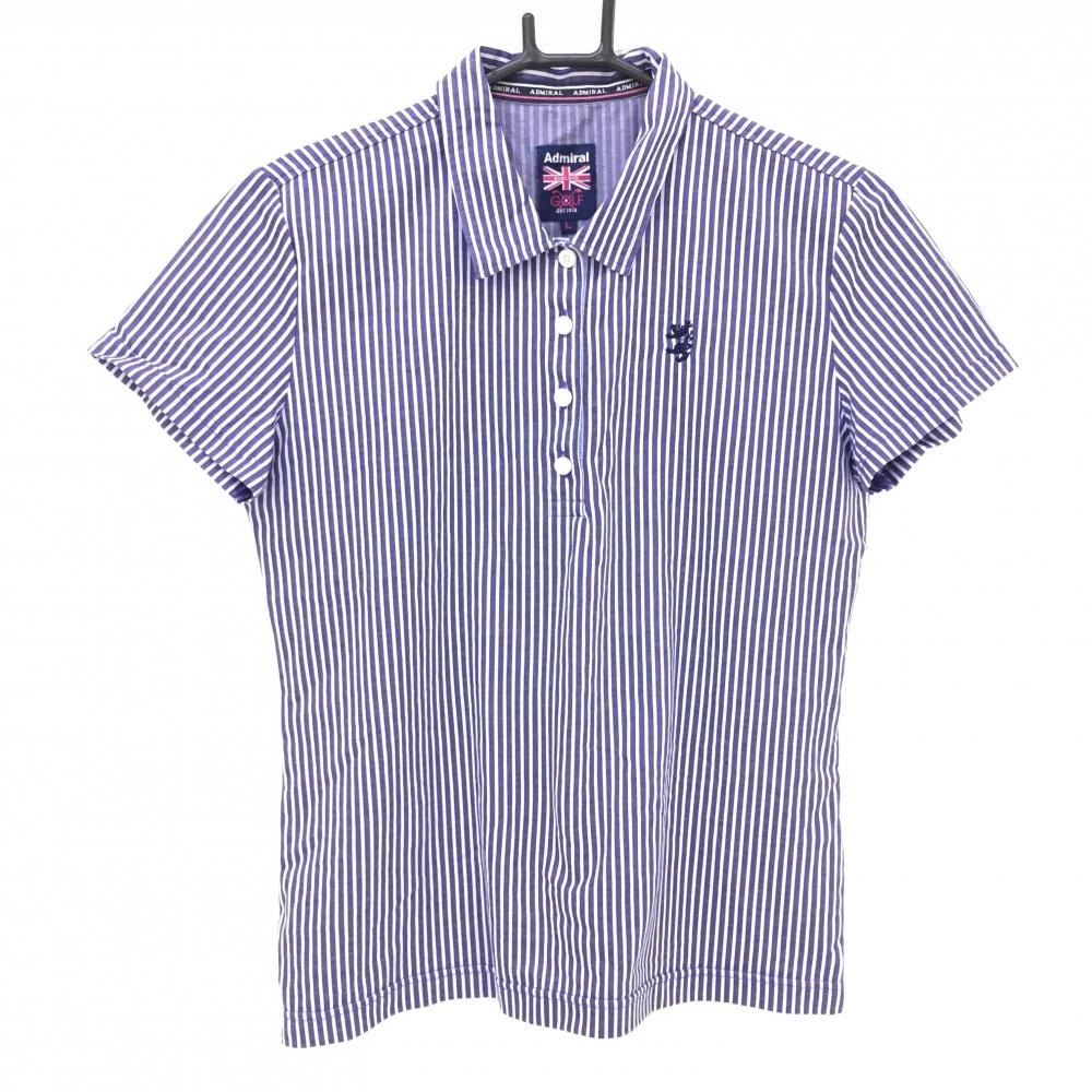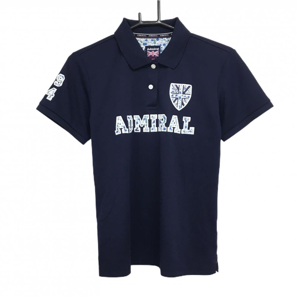 アドミラル 半袖ポロシャツ ネイビー×白 ドット ロゴプリント レディース L ゴルフウェア Admiral