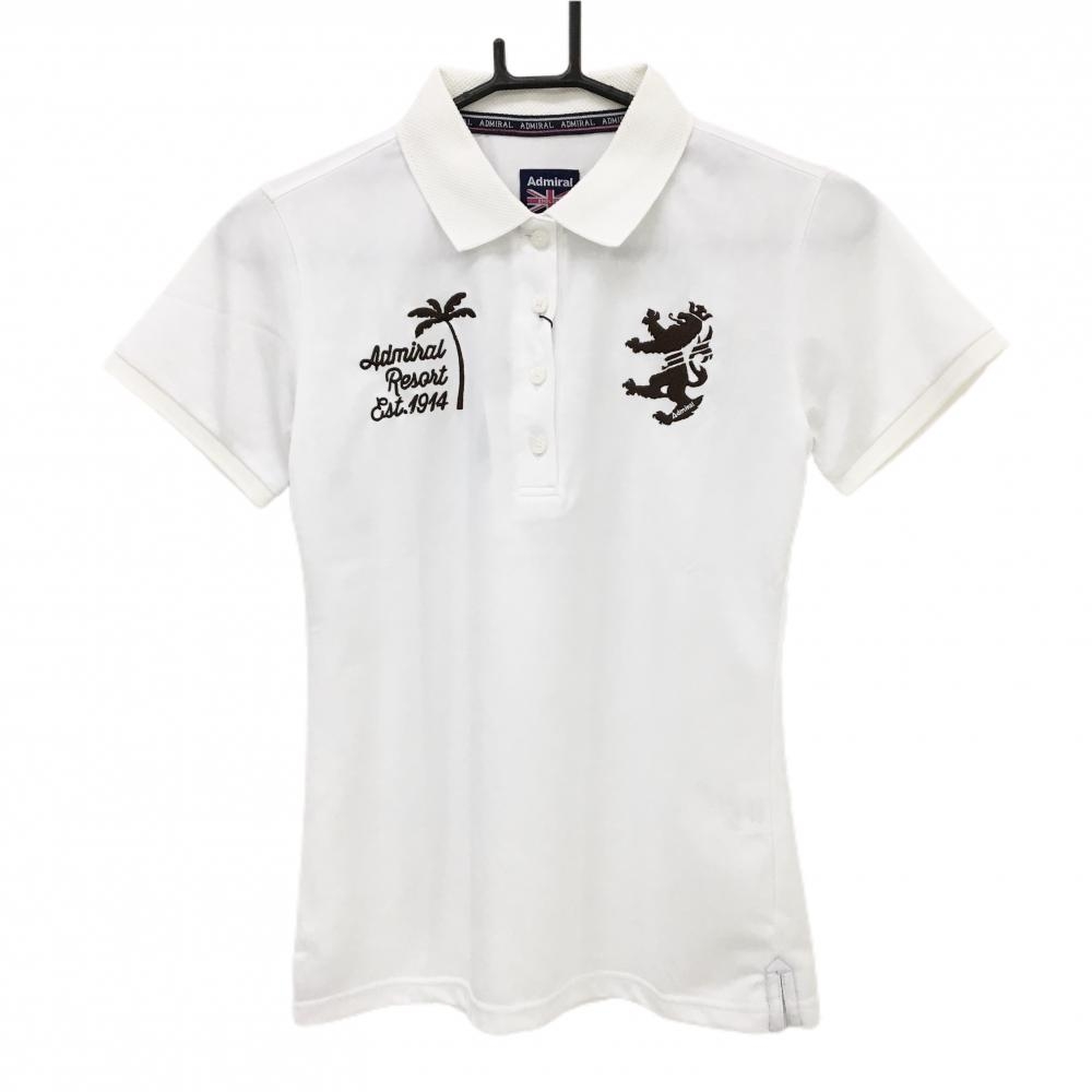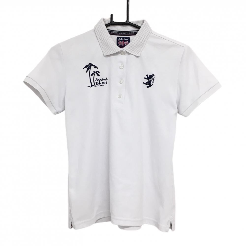 【超美品】アドミラル 半袖ポロシャツ 白 ドット地模様 ロゴシルバー レディース S ゴルフウェア Admiral
