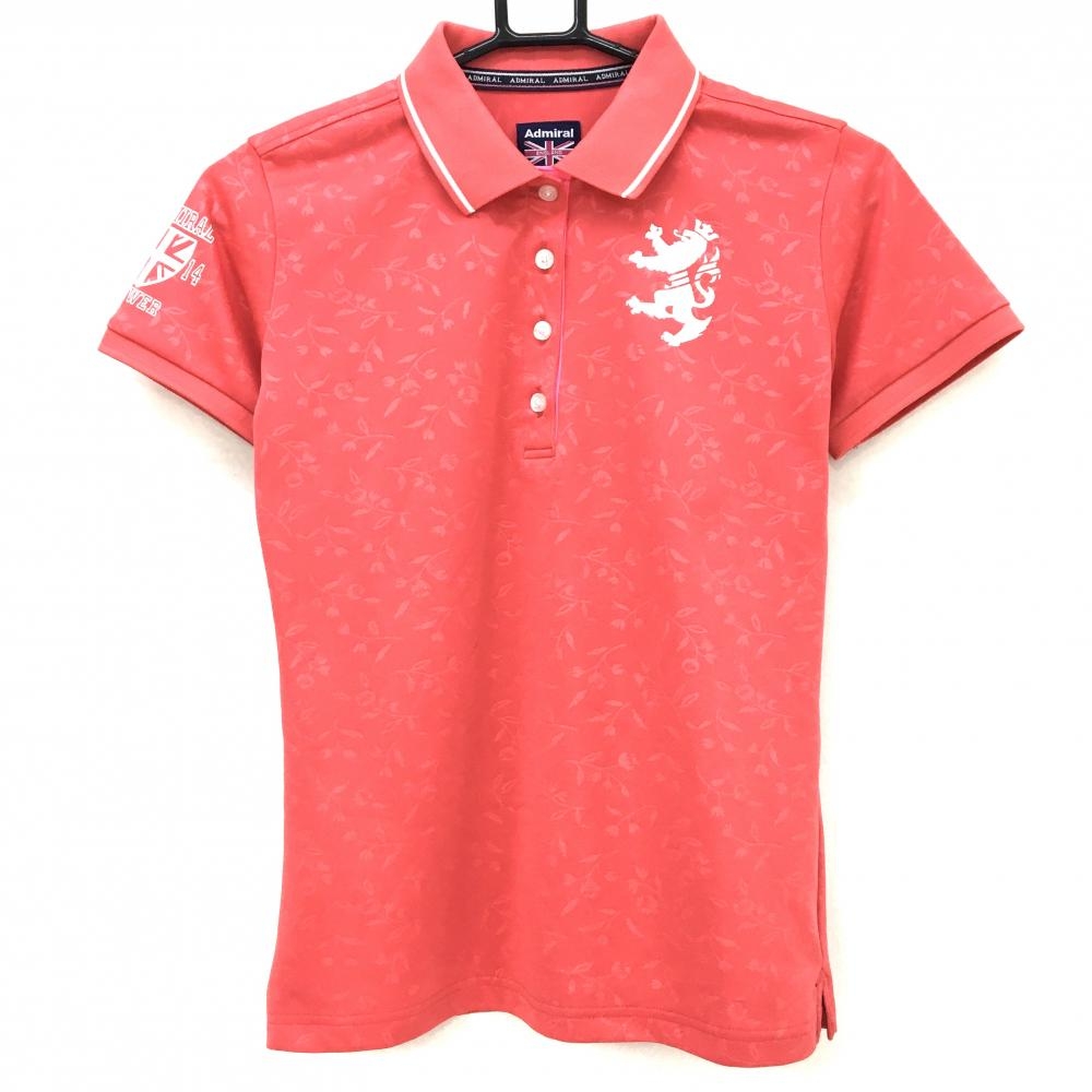 【超美品】アドミラル 半袖ポロシャツ ピンク 地模様 ヤシの木刺しゅう レディース M ゴルフウェア Admiral