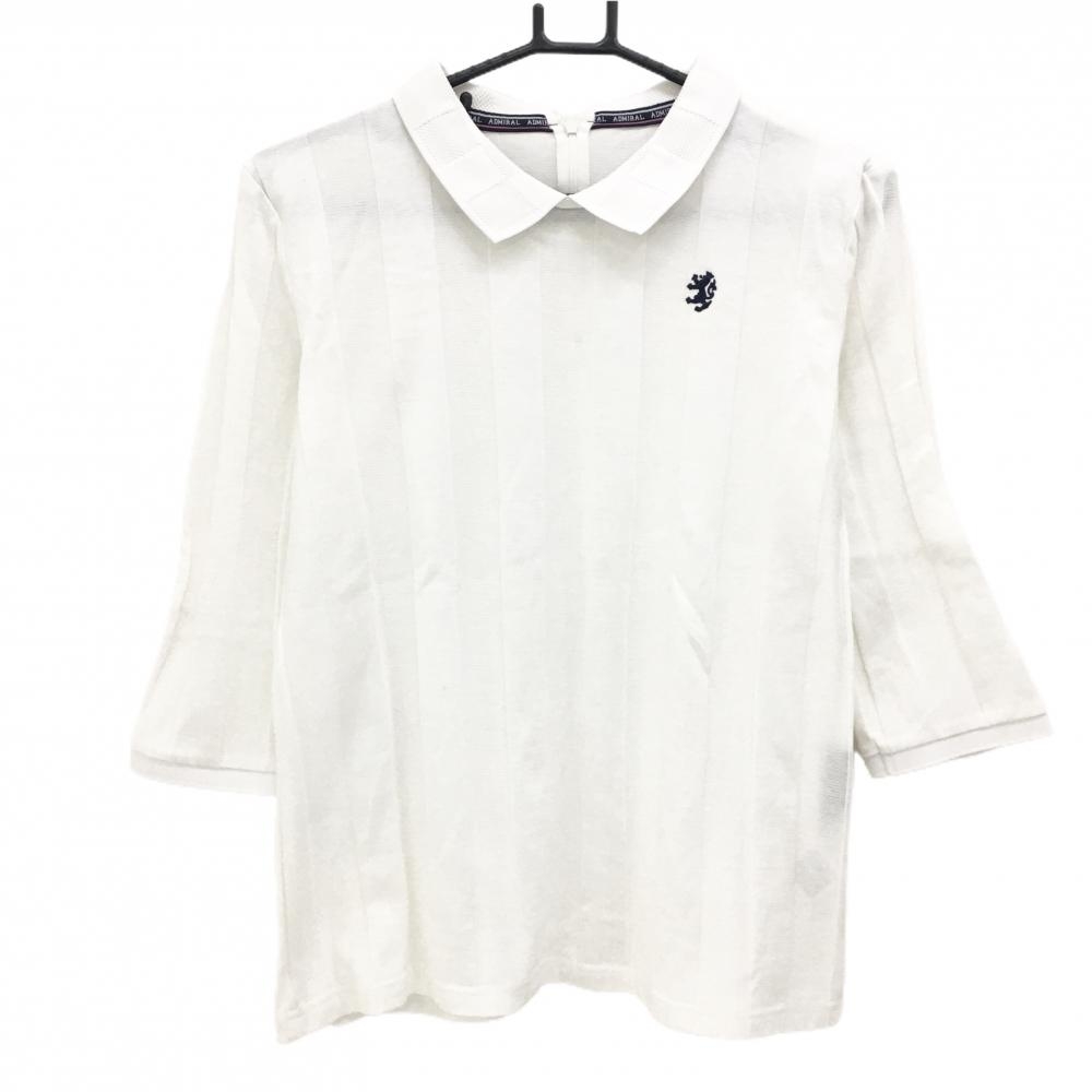 【美品】アドミラル 襟付き長袖シャツ 白 ストライプ織生地 七分袖 後ろハーフジップ レディース M ゴルフウェア Admiral