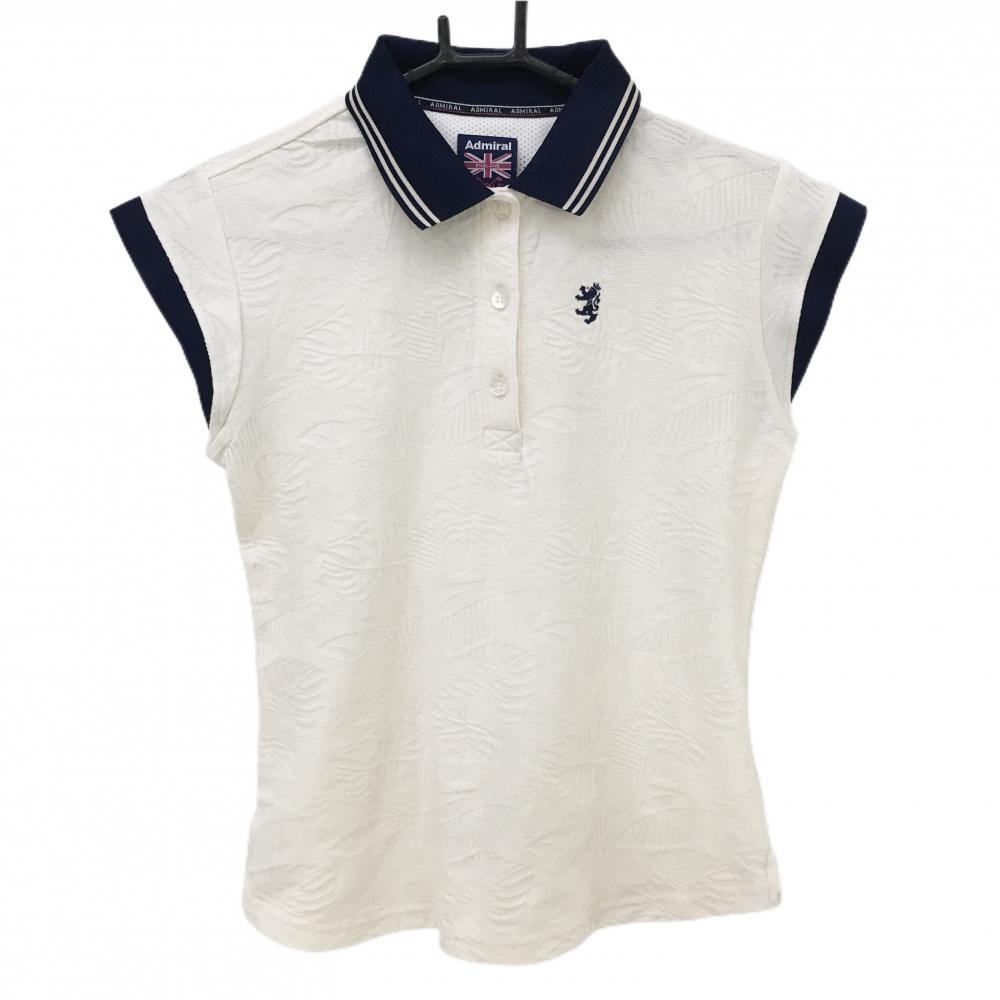 【超美品】アドミラル ノースリーブポロシャツ 白×ネイビー 一部ヤシの木柄 レディース S ゴルフウェア Admiral