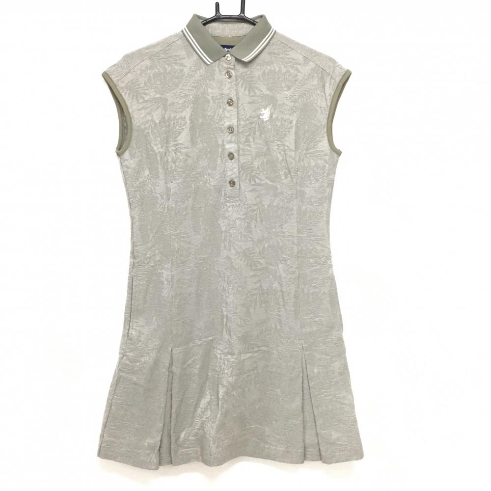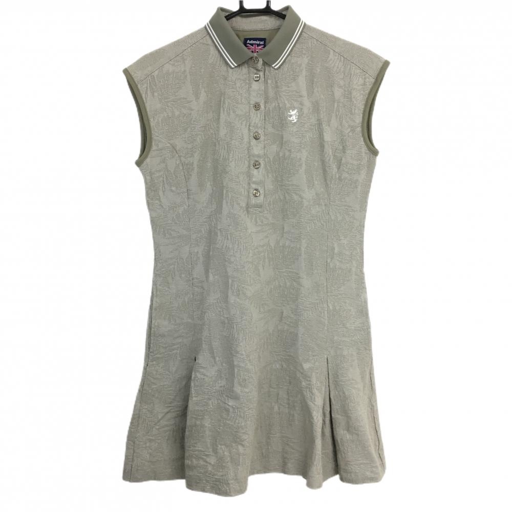 アドミラル ノースリーブポロワンピース 白×ネイビー 上部ヤシの木柄 ロゴピンク レディース M ゴルフウェア Admiral