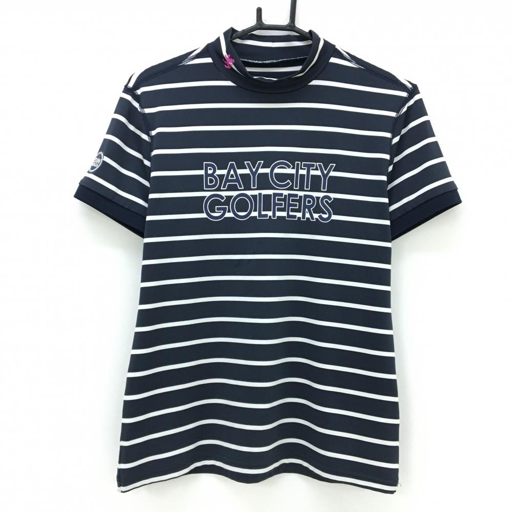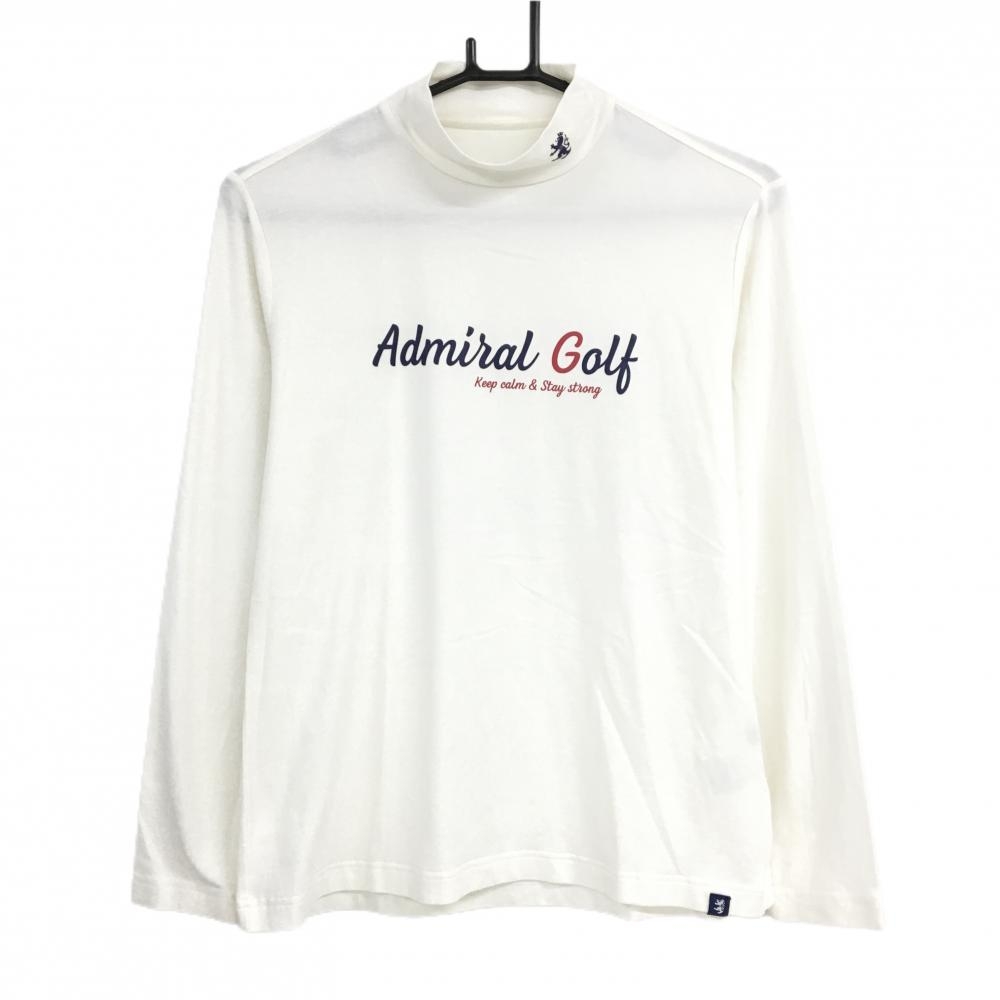【美品】アドミラル 半袖ハイネックシャツ 白×ベージュ系 フロントロゴ刺しゅう レディース L ゴルフウェア 2024年モデル Admiral