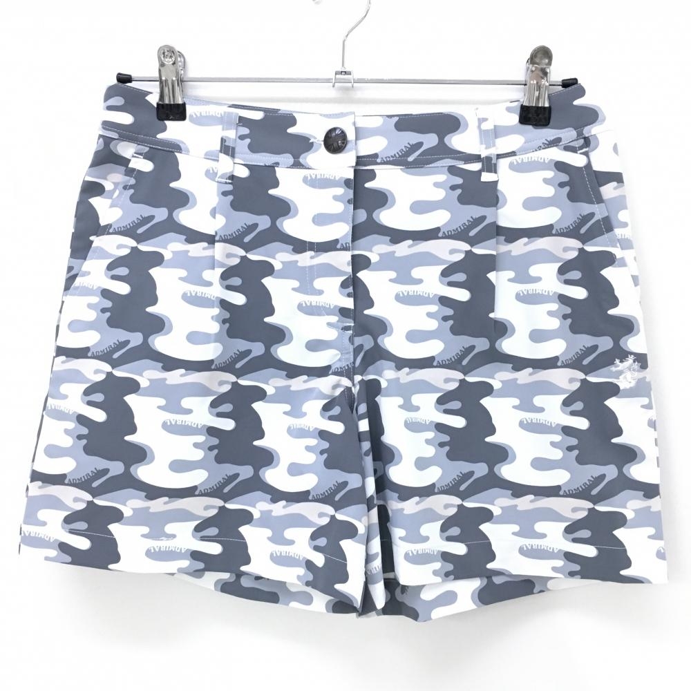 【超美品】アドミラル スカート ネイビー×白 総柄 内側インナーパンツ ストレッチ レディース M ゴルフウェア Admiral