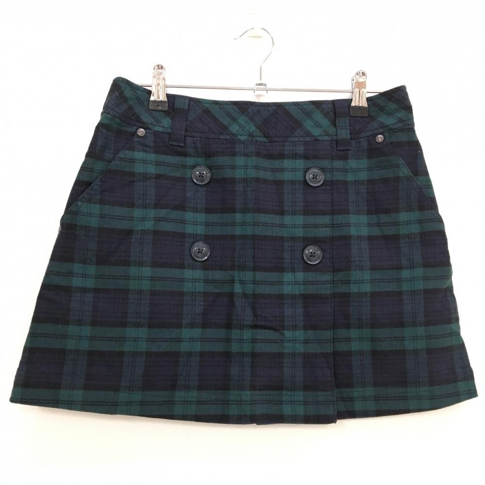 【超美品】アドミラル ウール巻きスカート ネイビー×グリーン チェック ロゴワッペン 裏地付き レディース S ゴルフウェア Admiral