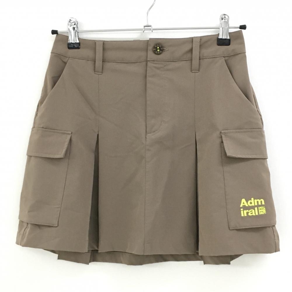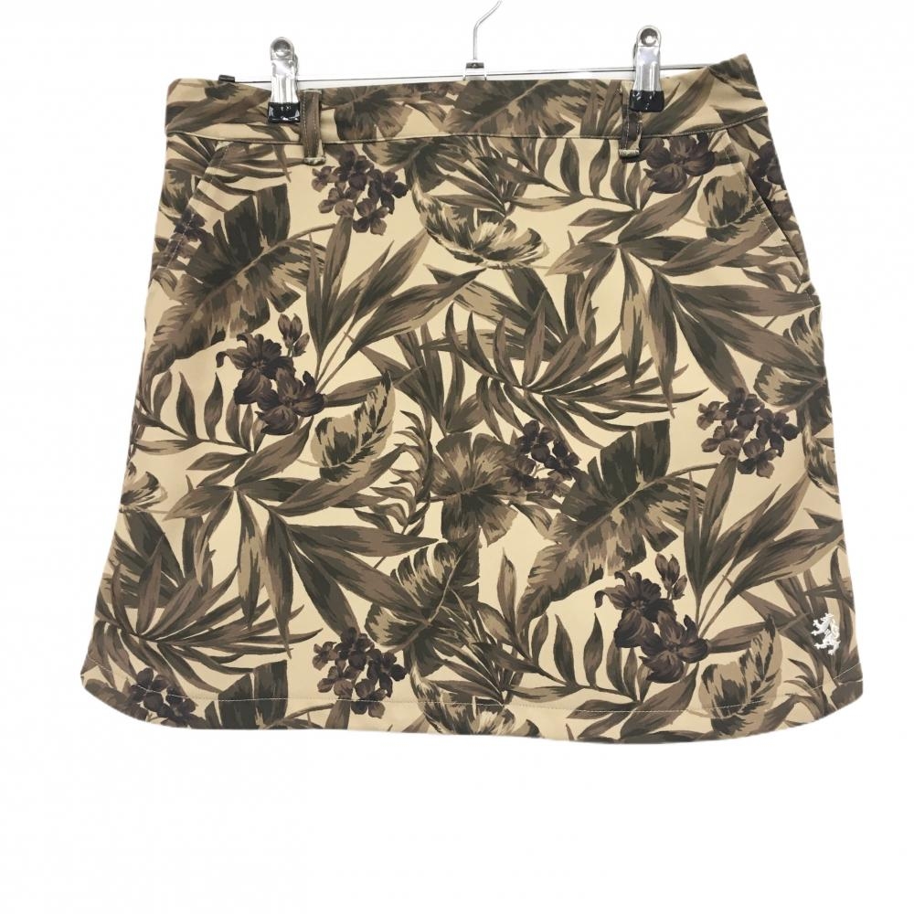 【超美品】アドミラル スカート ベージュ×ダークグリーン リーフ柄 サッカー生地 レディース L ゴルフウェア Admiral