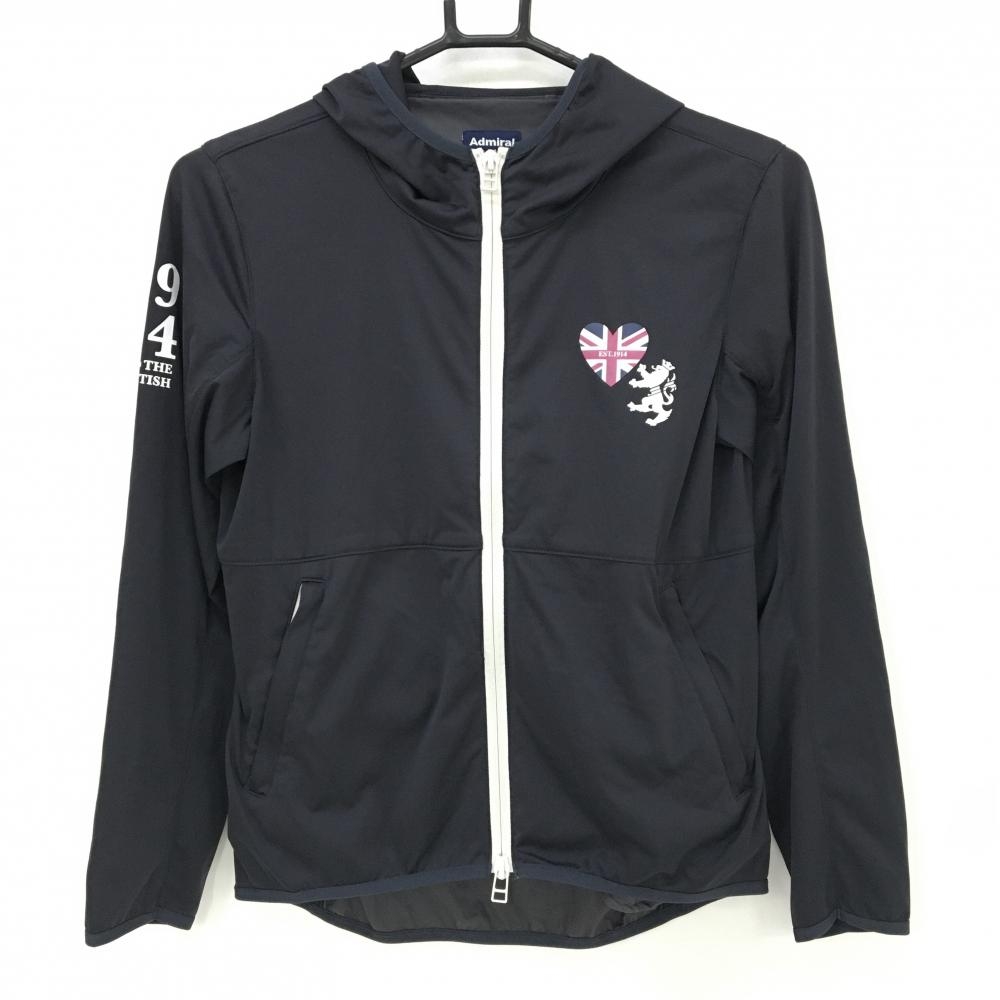 【超美品】アドミラル ジップパーカー ネイビー 胸元ロゴライン ベロア レディース M ゴルフウェア Admiral