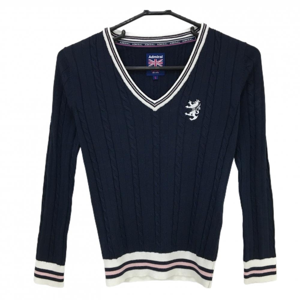 アドミラル セーター ネイビー×白 袖ライン ニット レディース LL ゴルフウェア Admiral