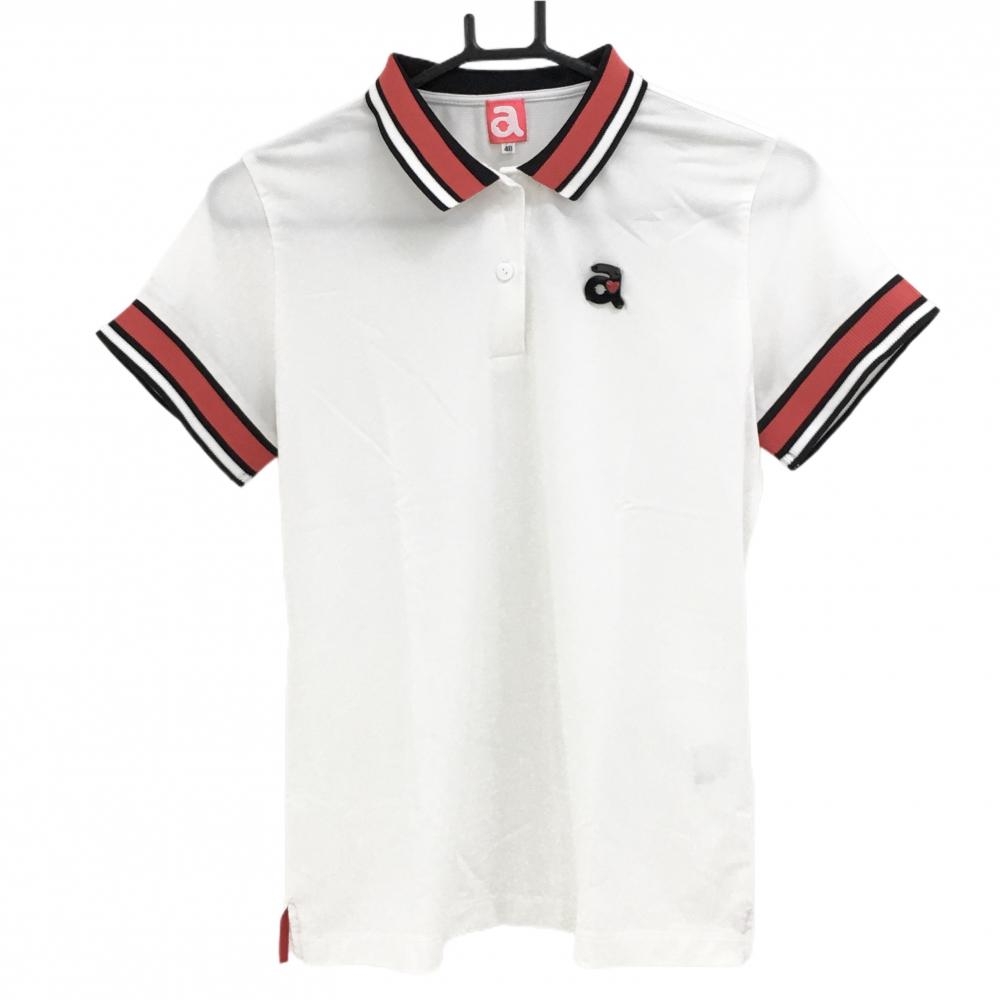 アルチビオ 襟付き長袖シャツ 白×レッド 肩・袖ライン ロゴプリント レディース 38(M) ゴルフウェア archivio