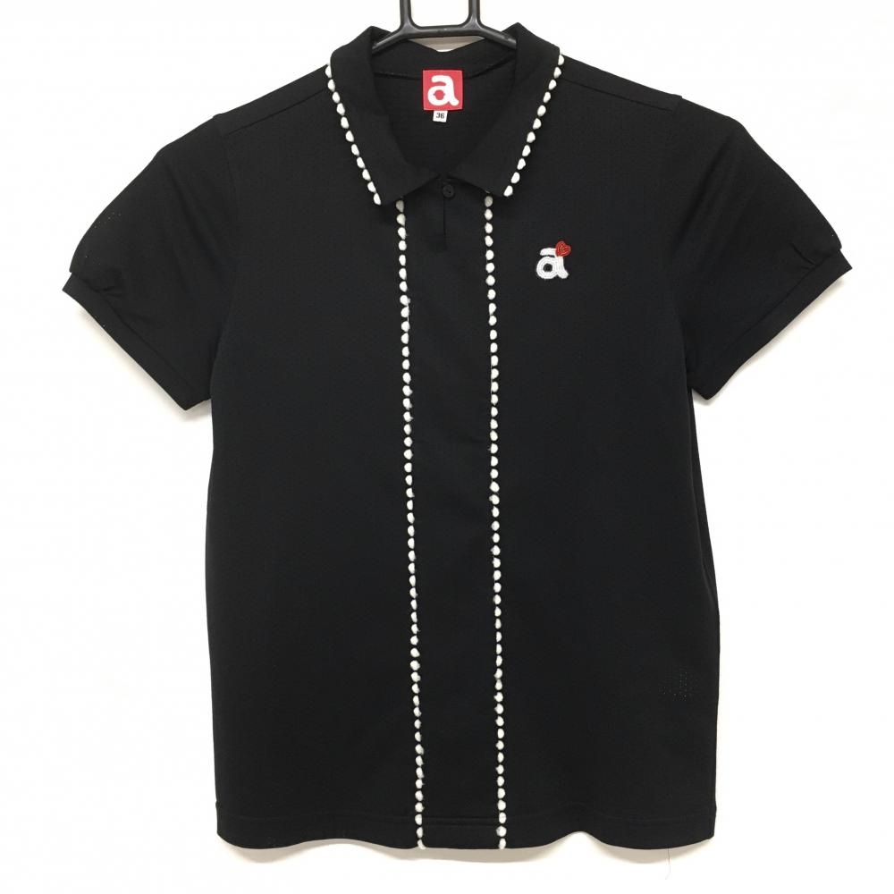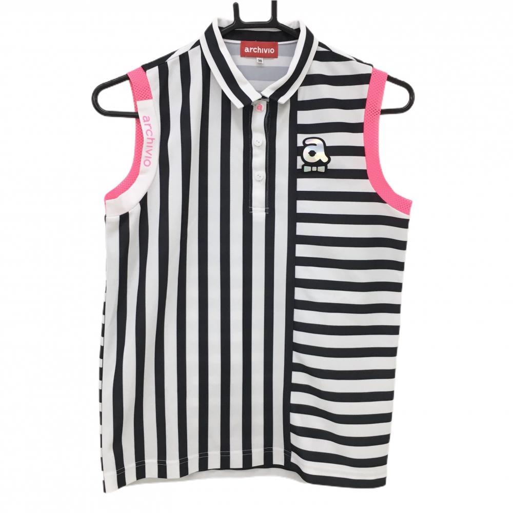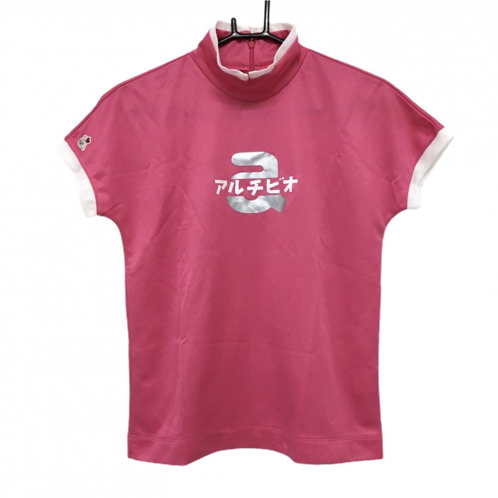 アルチビオ 半袖ハイネックシャツ 黒×白 フロントロゴ レディース 40(L) ゴルフウェア archivio