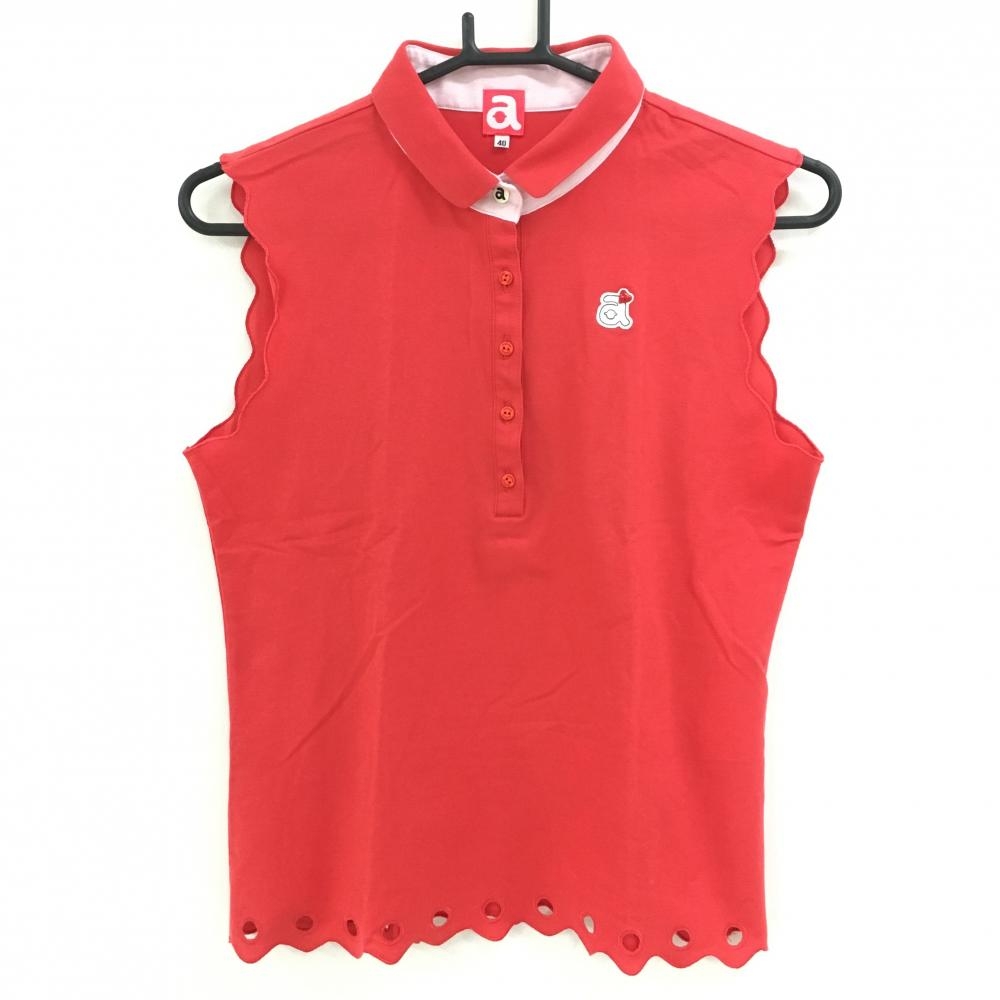 【超美品】アルチビオ 襟付セーター レッド×白 襟ジップ アンゴラ混 ニット レディース 36(S) ゴルフウェア archivio