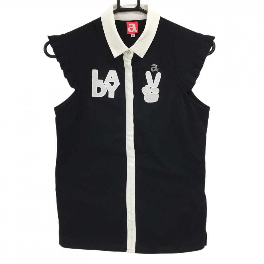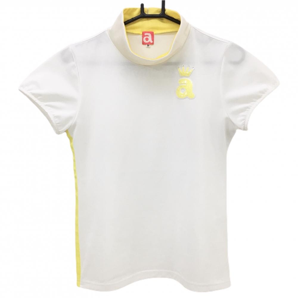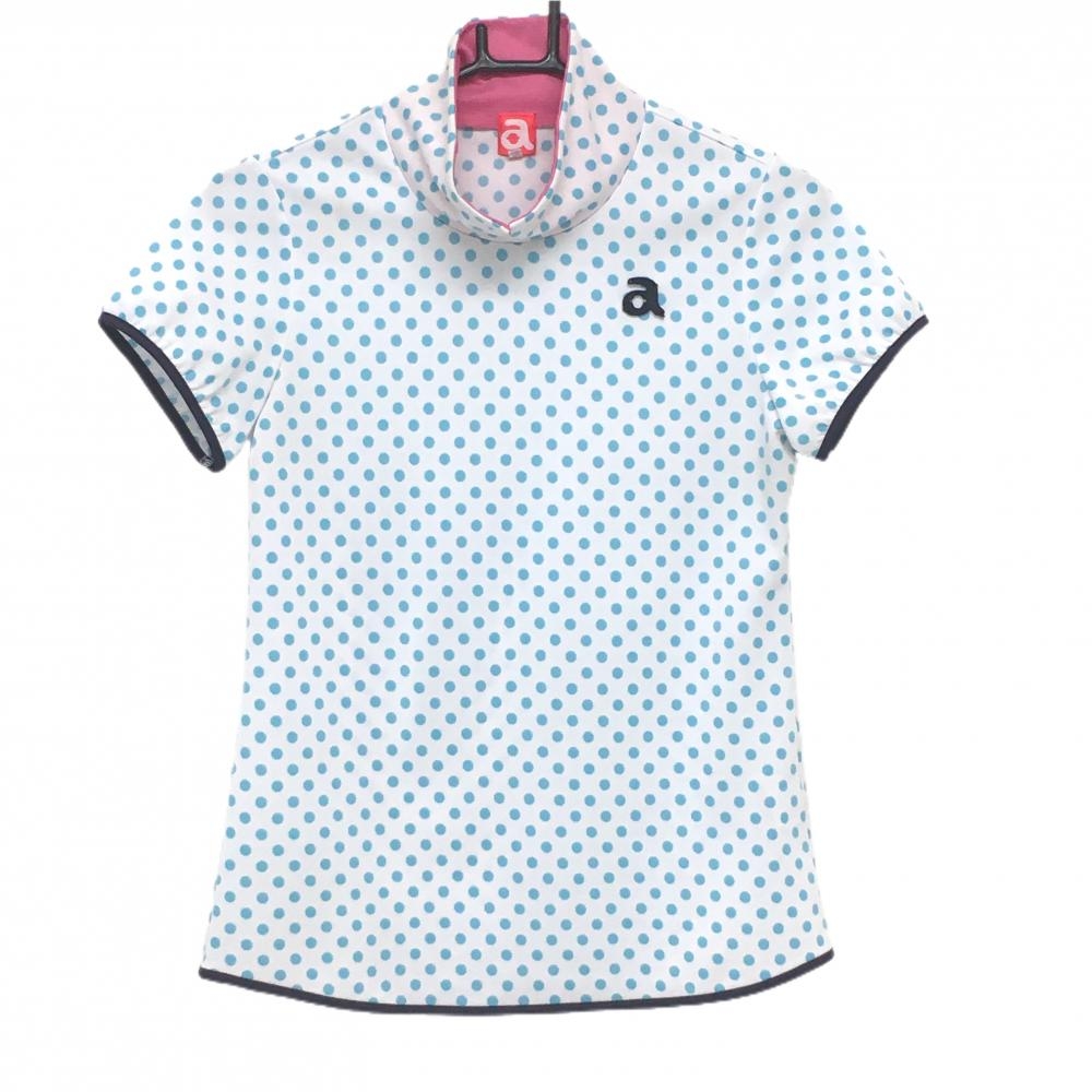 【新品】アルチビオ 半袖ハイネックシャツ ネイビー×白 UVカット フロントロゴ レディース 38(M) ゴルフウェア Admiral