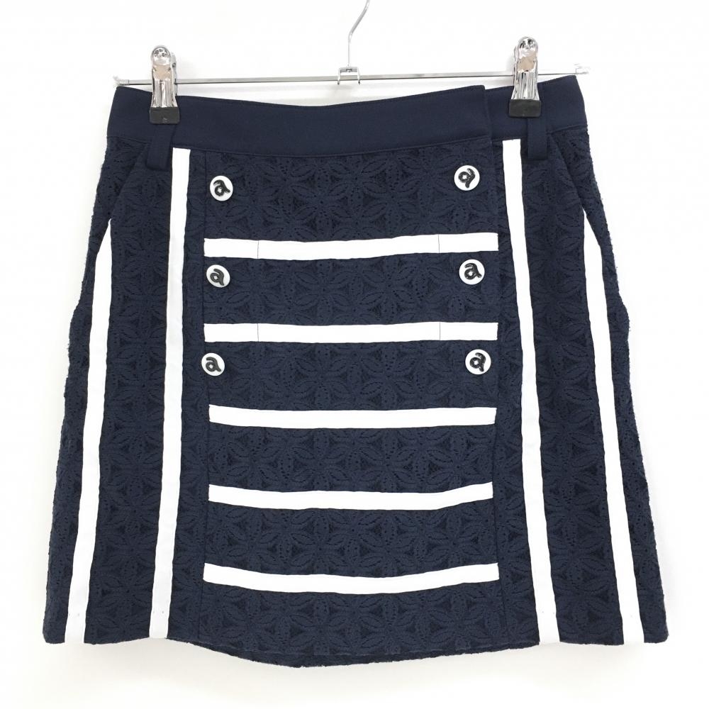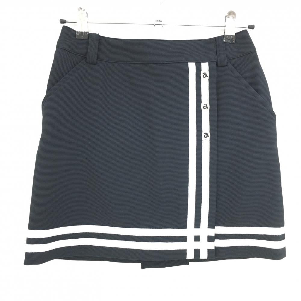 【超美品】アルチビオ ニットスカート ネイビー×白 ウエストゴム&ロゴ レディース 38(M) ゴルフウェア 2024年モデル archivio