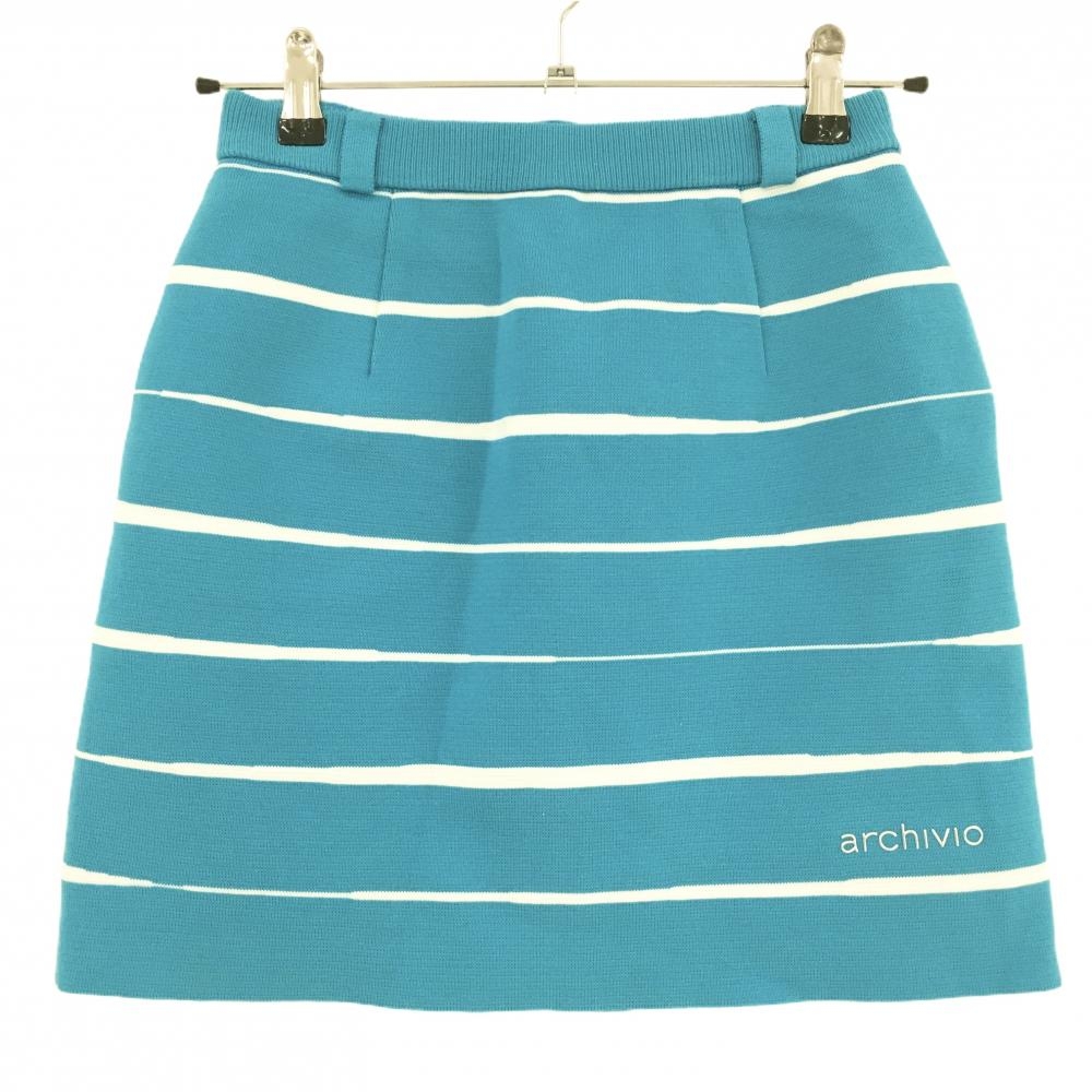 アルチビオ ニットスカート 白×ブルー 裾ボーダー ストレッチ レディース 38(M) ゴルフウェア archivio