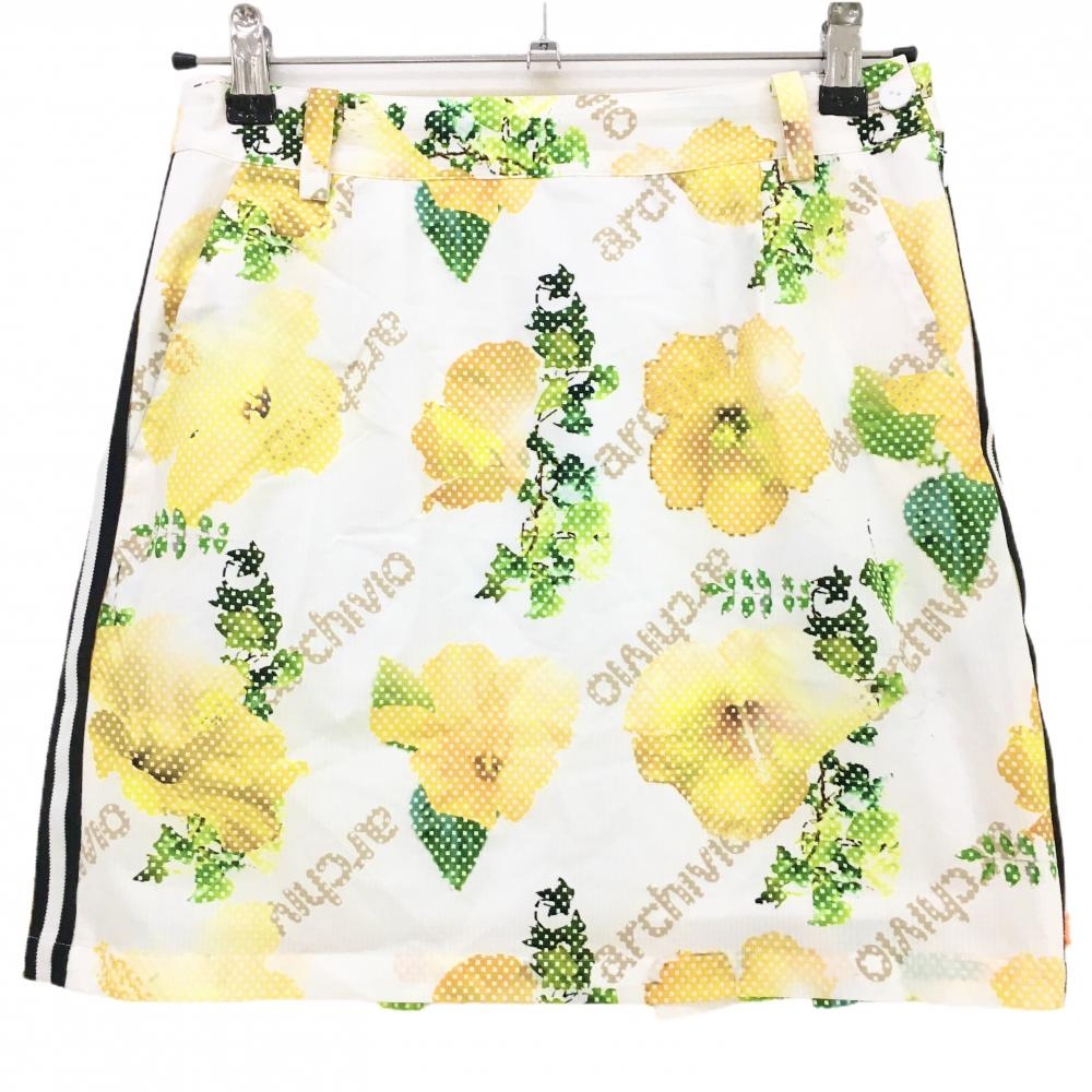 【超美品】アルチビオ スカート 白×オレンジ 総柄 裏地付 レディース 40(L) ゴルフウェア archivio