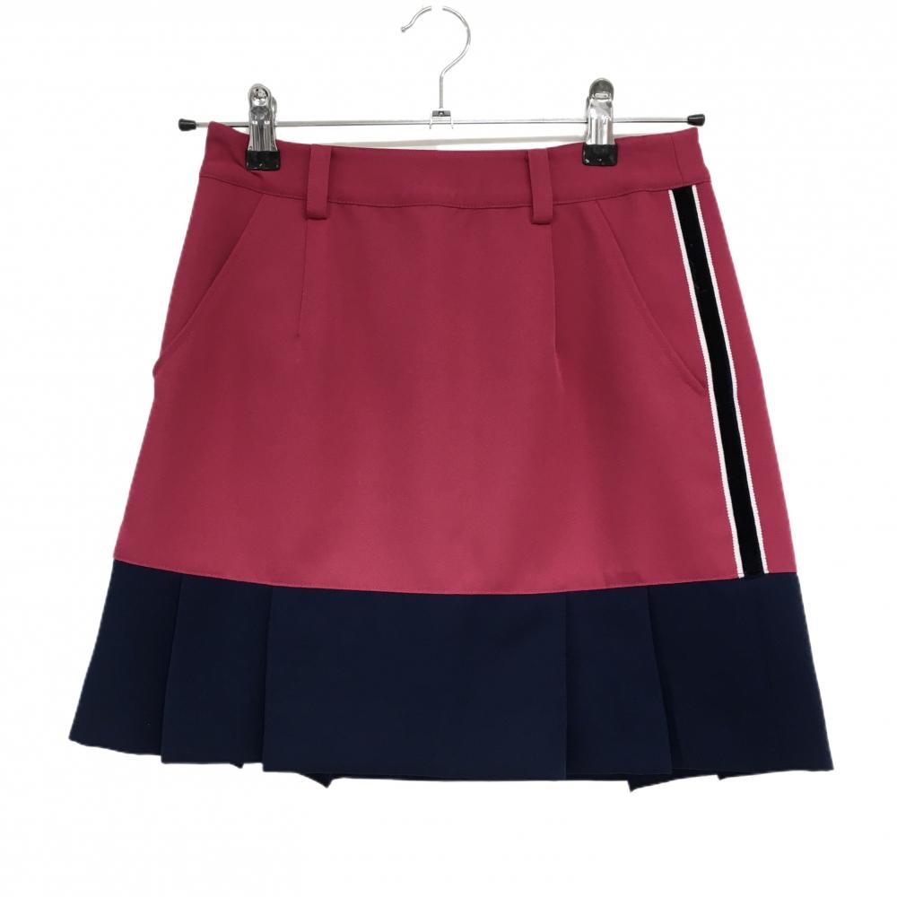 【美品】アルチビオ スカート ピンク系×ネイビー 裾プリーツ サイドライン 裏地付 レディース 36(S) ゴルフウェア archivio