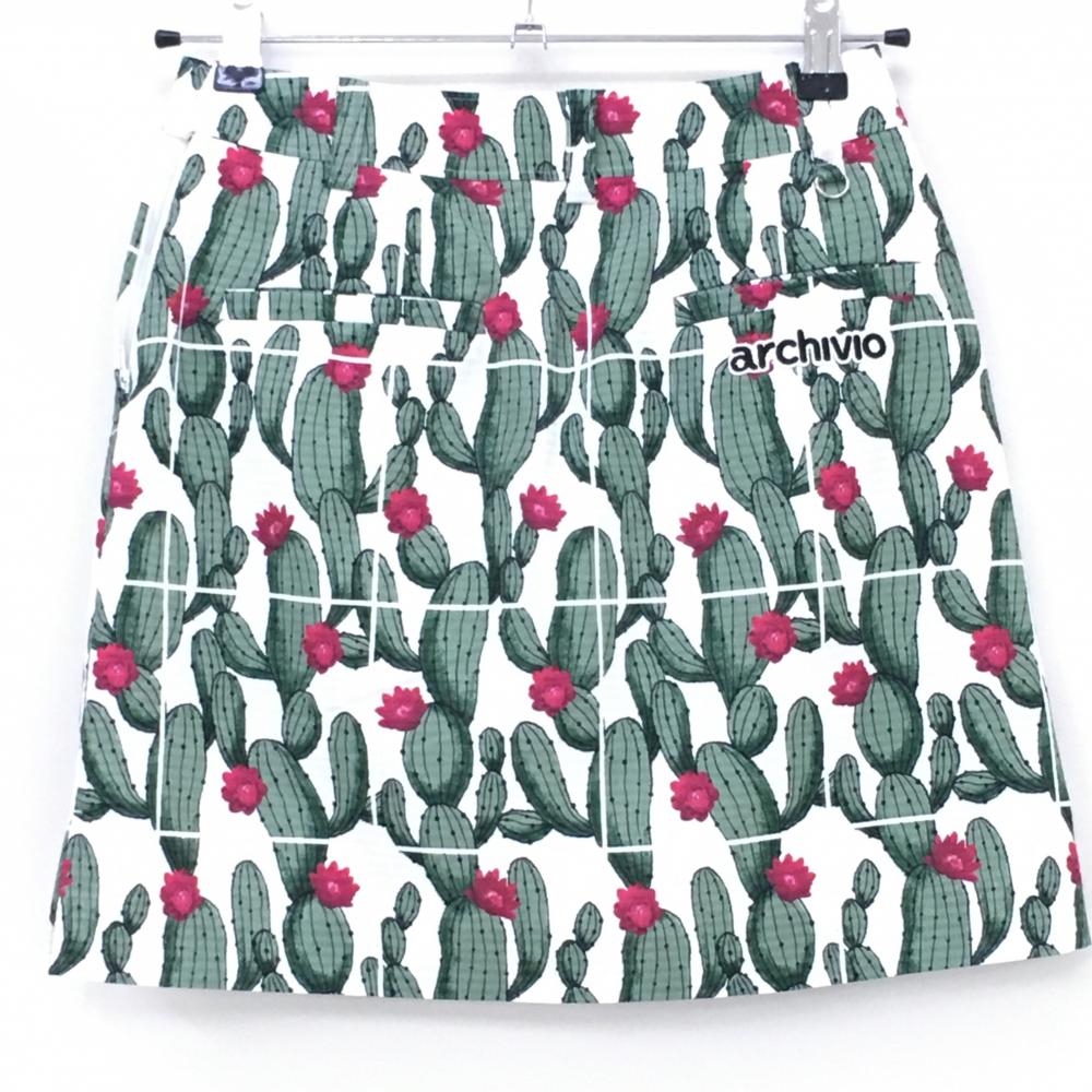 【美品】アルチビオ スカート グリーン×白 リーフ総柄 レディース 36(S) ゴルフウェア archivio