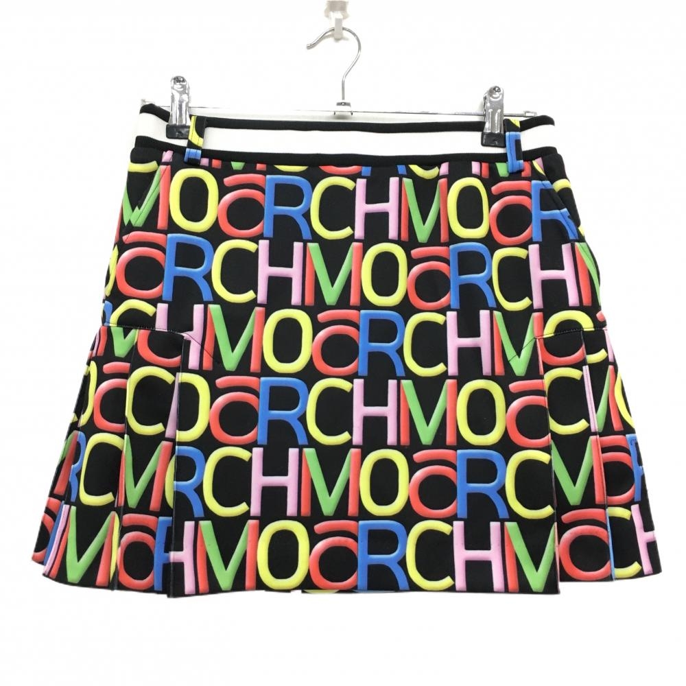 アルチビオ スカート 黒×イエローブラウン ロゴ総柄 サイドライン レディース 38(M) ゴルフウェア archivio