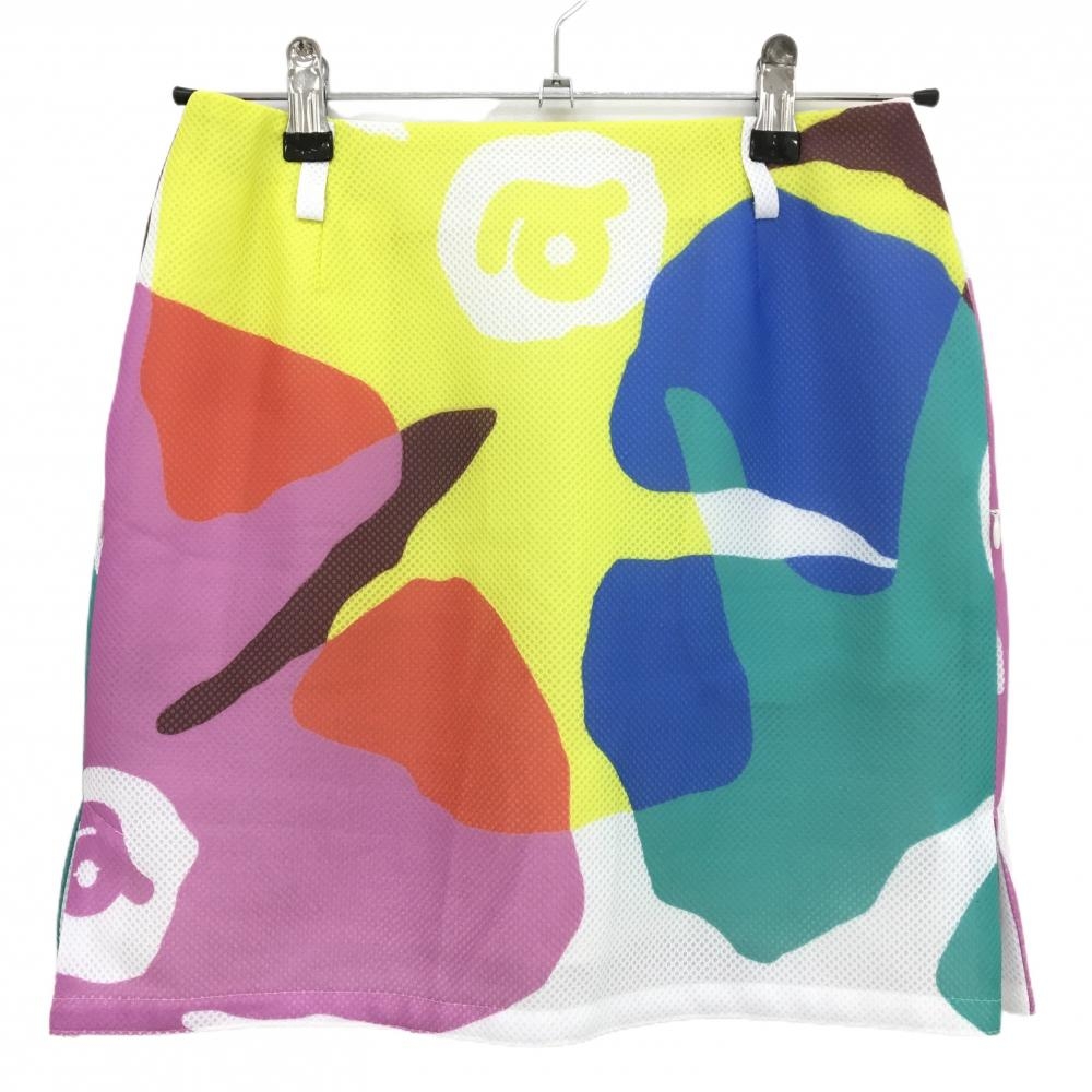 【超美品】アルチビオ リバーシブルニットスカート 白×マルチカラー ロゴライン レディース 38(M) ゴルフウェア archivio